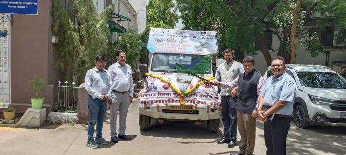त्याअनुषंगाने जिल्हयामध्ये धरती आबा जनभागीदारी अभियानाची माहिती प्रस्तुत करण्यासाठी प्रचार वाहणे तयार केली आहेत. या वाहनांना जिल्हाधिकारी विनय गौडा जी. सी., व जिल्हा परिषदेचे मुख्य कार्यपालन अधिकारी पुलकित सिंह यांच्या हस्ते हिरवी झेडी दाखवून शुभारंभ करण्यात आला आहे. या प्रसंगी मनपा आयुक्त विपीन पालीवाल, प्रकल्प अधिकारी विकास राचेलवार, सहाय्यक प्रकल्प अधिकारी गिरीश पोळ उपस्थित होते.