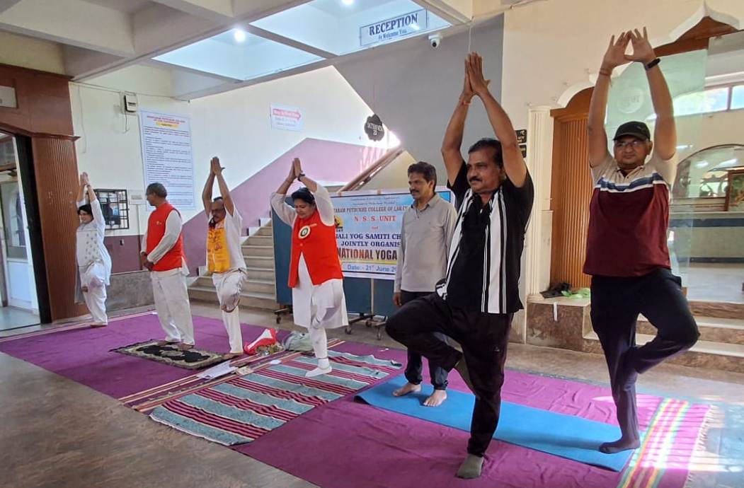 दि. २१ जून २०२५ रोजी शांताराम पोटदुखे विधी महाविद्यलयामधे राष्ट्रीय सेवा योजना विभाग तसेच पतंजली योग सेवा समिती, चंद्रपूर यांच्या संयुक्त विद्यमाने आंतरराष्ट्रीय योगा दिवस निमित्य कार्यक्रम आयोजित करण्यात आला. महाविद्यालयाचे प्राचार्य डॉ. एजाज शेख यांच्या अध्यक्षतेखाली आंतरराष्ट्रीय योग दिन निमित्य कार्यक्रम आयोजित करण्यात आला. पतंजली योग सेवा समिती, चंद्रपूरच्या वतीने देविदासजी ठावरी, श्रीकान्त बावणे, मंजूषा तपासे, शामराव हरडे यांनी याप्रसंगी विविध योग साधनांचे प्रात्यक्षिक सादर केले. ठावरी यांनी प्रत्येक योगासन, त्याचे महत्व आणि ती साधना करावयाचा कालावधी याची विस्तृत माहिती उपस्थितांना सांगितली. योग साधना करून आपण शारीरिक आणि मानसिक स्वास्थ्य सुदृढ ठेऊ शकतो असे बावणे यांनी सांगितले. कार्यक्रमाच्या आयोजनासाठी एन.एस.एस. प्रमुख नंदकिशोर भंडारी आणि माजी एन.एस.एस. प्रमुख डॉ. सरोजुमार दत्ता यांनी विशेष परिश्रम घेतले. कार्यक्रमाला सर्व प्राध्यापक वृंद शिक्षकेत्तर कर्मचारी तसेच विद्यार्थीची मोठया प्रमाणात उपस्थिती होती.