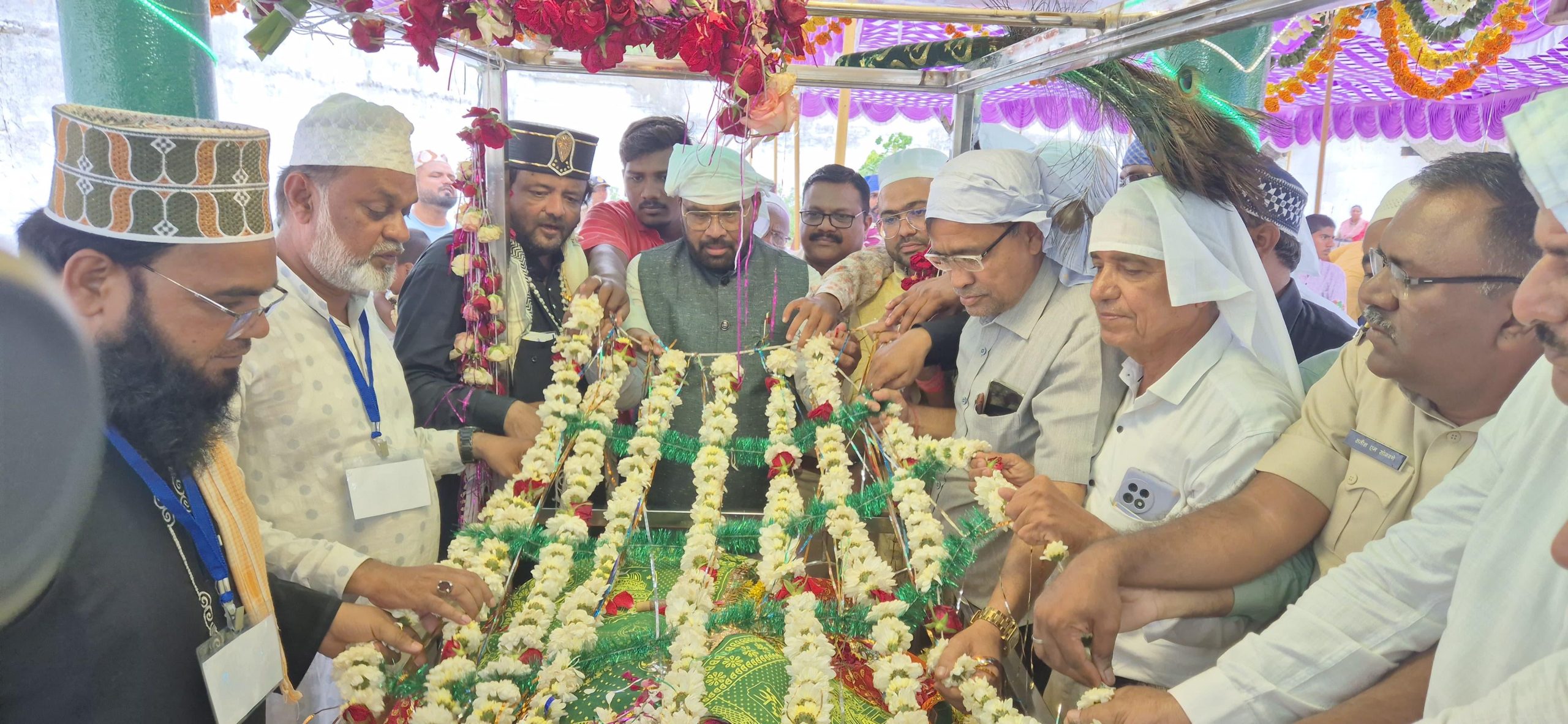 आजच्या दिवशी आपण इमाम हुसैन यांच्या शौर्याला, निष्ठेला आणि धर्मासाठी दिलेल्या सर्वोच्च बलिदानाला अभिवादन करतो. आपला चंद्रपूर जिल्हा विविधतेने नटलेला आहे. येथे अनेक धर्म, जाती, पंथ एकत्र राहतात. एकमेकांचे सण, उत्सव, परंपरा सन्मानाने साजरे करतात हीच आपल्या जिल्ह्याची खरी ताकद आणि ओळख आहे असे आमदार जोरगेवार यांनी नमूद केले. यानंतर आमदार किशोर जोरगेवार यांनी हजरत मखदूम उर्फ गैबीशाह वली दर्ग्यावर दर्शन घेत व्यवस्थेचीही पाहणी केली.