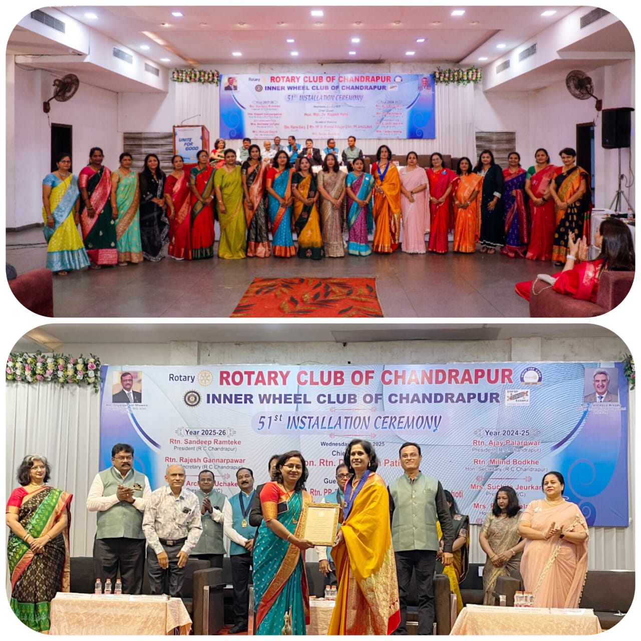चंद्रपुर – 2 जुलै रोजी इनरव्हील क्लब ऑफ चंद्रपूरचा नवनिर्वाचित सदस्य अर्चना उचके आणि सचिव हिमानी गोयल यांचा पदग्रहण समारंभ उत्साहात पार पडला यावेळी माजी अध्यक्ष सुचिता जेऊरकर यांनी 2025 -2026या वर्षासाठी नवयुक्त अध्यक्ष अर्चना उचके यांच्याकडे क्लबचा पदभार सोपवला सोबतच नव्या कार्यकारिणी हिमानी गोयल ;पल्लवी तेलंग ;अनघा आल्याडवार, स्मिता खांडरे ,मनीषा लांबट, कविता झाडे यांचा समावेश केला आहे. अर्चना उचके तथा नवनियुक्त कार्यकारिणींना सर्वांनी शुभेच्छा दिल्या यावेळी अर्चना उचके यांनी वर्षभर राबविण्यात येणाऱ्या उपक्रमाची माहिती दिली.