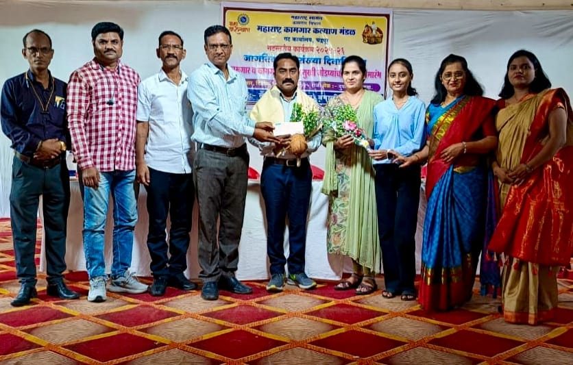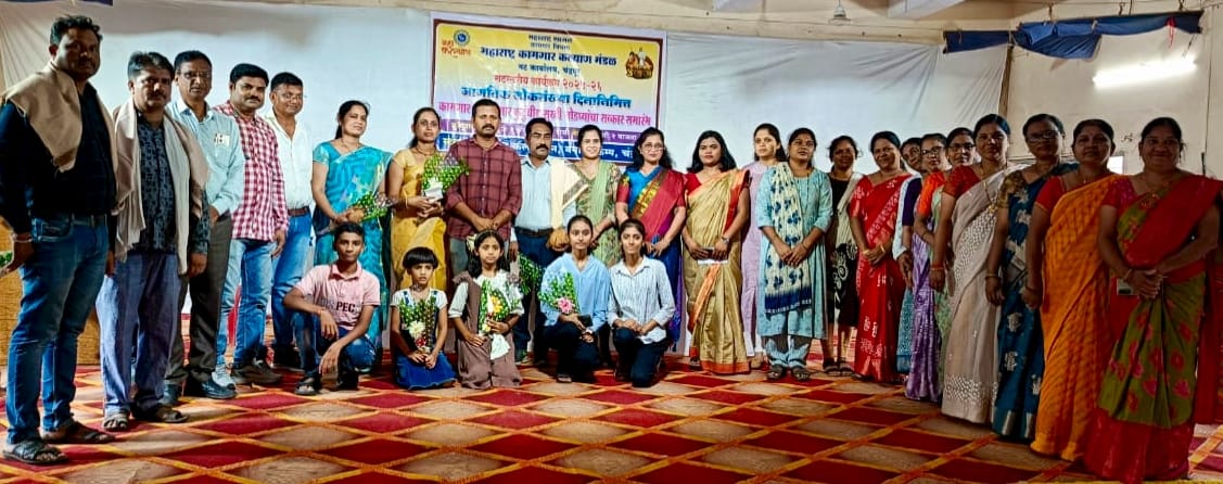 कामगार व कामगार कुटुंबीय सुखी जोडपे कामगार कल्याण केंद्र बल्लारपूर येथील पेपर मिल कामगार जितेंद्र कान्हा भोयर, कामगार कल्याण केंद्र हिंगणघाट येथील योगेश रमेशराव बोरकर Pee vee text मिल, कामगार कल्याण केंद्र, वर्धा येथील प्रफुल बाबाराव येसनकर कामगार कल्याण केंद्र गडचिरोली येथील रघुनाथ राजेश्वर नेवारे एसटी महामंडळ गडचिरोली, कामगार कल्याण केंद्र ऊर्जानगर येथील सुयोग तुळशीराम व-हाटे महानिर्मिती चंद्रपूर यांचा शाल, श्रीफळ ,पुष्पगुच्छ व नगद राशी रु.५०००/- मान्यवरांच्या हस्ते देऊन सत्कार करण्यात आला.