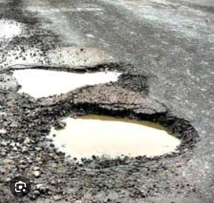 वांगेपल्ली मार्गावर डांबर उखडल्याने असे खड्डे पडले आहेत.