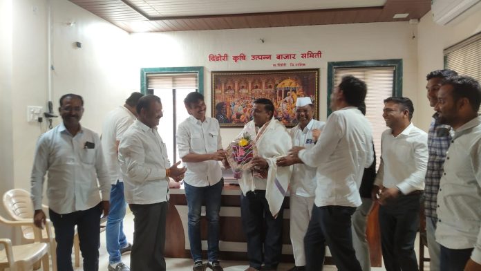 दिंडोरी येथे कृषी उत्पन्न बाजार समितीची बैठक सभापती प्रशांत कड यांच्या अध्यक्षतेखाली नुकतीच पार पडली.यावेळी सर्वानुमते अशोक पवार यांची हमाल व्यापारी संचालकपदी निवड करण्यात आली.अशोक पवार हे अनेक वर्षांपासून कृषी उत्पन्न बाजार समितीमध्ये कार्यरत आहे.त्यांच्या कार्याची दखल घेऊन ही निवड करण्यात आली.यावेळी पवार यांचा माजी आमदार रामदास चारोस्कर सभापती प्रशांत कड व उपसभापती योगेश बर्डे कैलास मवाळ यांच्या हस्ते पुष्पगुच्छ देऊन सत्कार करण्यात आला.