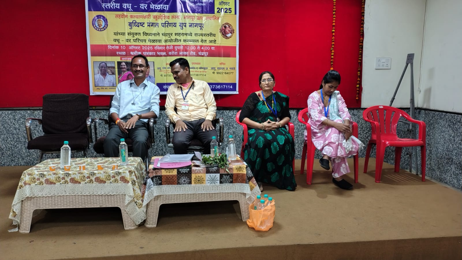प्रणाली येरपुडे विशेष तालुका प्रतिनिधी चंद्रपूर – चंद्रपूर शहरात बुद्धिष्ट मंगल परिणय ग्रुप, नागपूर यांच्या वतीने राज्यस्तरीय वधू-वर बौद्ध धम्म परिचय मेळाव्याचे आयोजन करण्यात आले. या मेळाव्यात राज्यभरातील अनेक वधू-वरांनी सहभाग नोंदवून एकमेकांना ओळख करून घेतली व बौद्ध धम्माच्या तत्त्वज्ञानावर चर्चा करण्यात आली.