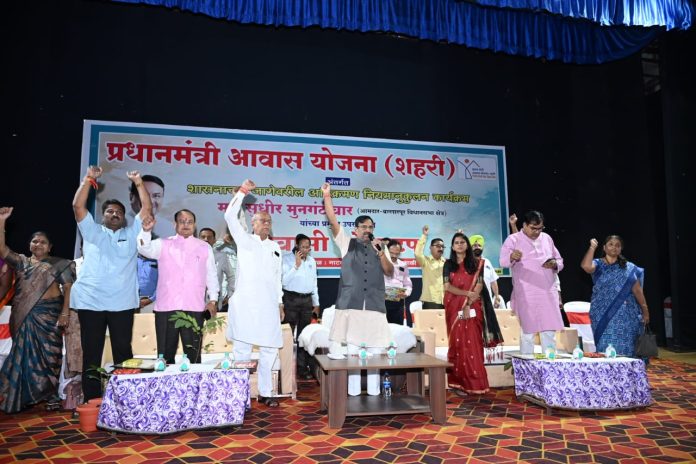 बल्लारपूर, नाट्यगृह येथे प्रधानमंत्री आवास योजना (शहरी) अंतर्गत शासनाच्या जागेवरील अतिक्रमण नियमानुकूलन निवासी पट्टेवाटप कार्यक्रमाप्रसंगी ते बोलत होते. कार्यक्रमाला भाजपा जिल्हाध्यक्ष हरीश शर्मा, वन विकास महामंडळाचे माजी अध्यक्ष चंदनसिंह चंदेल,कामगार मोर्चाचे प्रदेश महासचिव अजय दुबे,शहर अध्यक्ष रणजंय सिंग, समीर केने, जयश्री मोहूर्ले, राजू दारी, नगरपरिषदेचे मुख्याधिकारी विशाल वाघ,तहसीलदार रेणुका कोकाटे, उपअधीक्षक भूमि अभिलेख अनिल देशमुख, अग्निशमन अधिकारी शुभम रत्नपारखी, नायब तहसीलदार फुलझेले आदींची उपस्थिती होती.