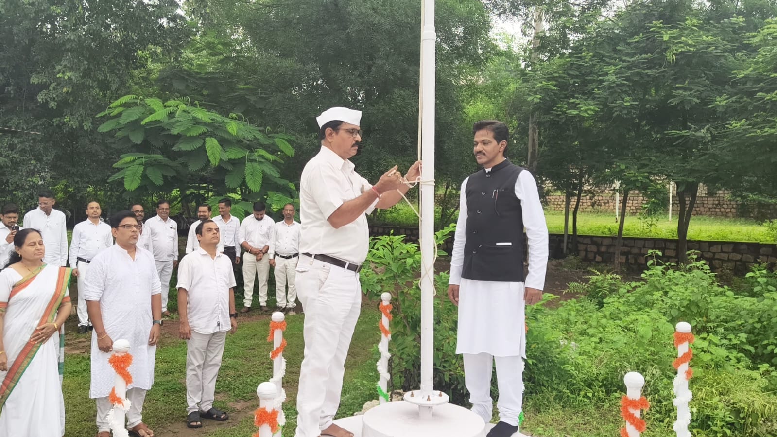 चंद्रपुर:स्थानिक शांताराम पोटदुखे विधी महाविद्यालय येथे १५ ऑगस्ट 2025 रोजी, स्वातंत्र्याची 78 वर्षे पूर्ण झाल्या च्या निमित्ताने अमृत महोत्सव आनंदाने साजरा करण्यात आला. विधी महाविद्यालयाचे प्राचार्य डॉ. ऐजाज शेख यांच्या शुभहस्ते ध्वजारोहण महाविद्यलयात करण्यात आले.या प्रसंगी एल एल बी तिनं वर्षीय अभ्यासक्रमाचे विभाग प्रमुख प्रा. डॉ. अभय बुटले, बी ए एल एल बी अभ्यासक्रमाचे विभाग प्रमुख प्रा. डॉ. मनीषा आवळे, पदवीतर विभाग प्रमुख प्रा. डॉ. पंकज काकडे, सर्व प्राध्यापक वृंद शिक्षकेतर कर्मचारी तसेच विद्यार्थी यांची प्रामुख्याने उपस्थिती होती. महाविद्यालया चे शारीरिक शिक्षण विभाग प्रमुख डॉ. सरोज कुमार दत्ता यांनी कार्यक्रमा च्या आयोजना साठी अथक परिश्रम घेतले.या प्रसंगी विधी महाविद्यालयात ध्वजारोहण आणि ध्वज वंदन करण्यात आले. महाविद्यालया चे प्राचार्य डॉ. ऐजाज शेख यांनी सर्वाना 79 व्या स्वातंत्र्य दिनाच्या हार्दिक शुभेच्छा प्रदान केल्या आणि आज च्या तरुण पिढी ने भारताच्या स्वातंत्र्य सेनानी यांच्या बलिदाना ची जाण ठेवण्याचे आवाहन केले.आज या आधुनिक युगात कायद्याचे ज्ञान घेणाऱ्या विध्यार्थ्यानी संविधानिक अधिकार या विषयी जागरूकता निर्माण करावी असे प्राचार्य डॉ. ऐजाज शेख यांनी आव्हान केले.या प्रसंगी शारीरिक शिक्षण विभाग प्रमुख डॉ. सरोज कुमार दत्ता यांनी विध्यार्थ्यांना मार्गदर्शन करतांना तरुणांनी 2047 च्या विकसित भारत या संकल्पने चा पुरस्कार करावा असे आवाहन केले. विधी महाविद्यालयात मेरी माटी मेरा देश तसेच हर घर तिरंगा या कार्यक्रमा च्या आयोजना सोबतच तिन दिवासीय ध्वजारोहण देखील करण्यात आले.कार्यक्रमाला विद्यार्थी मोठया संख्येने उपस्थित होते.