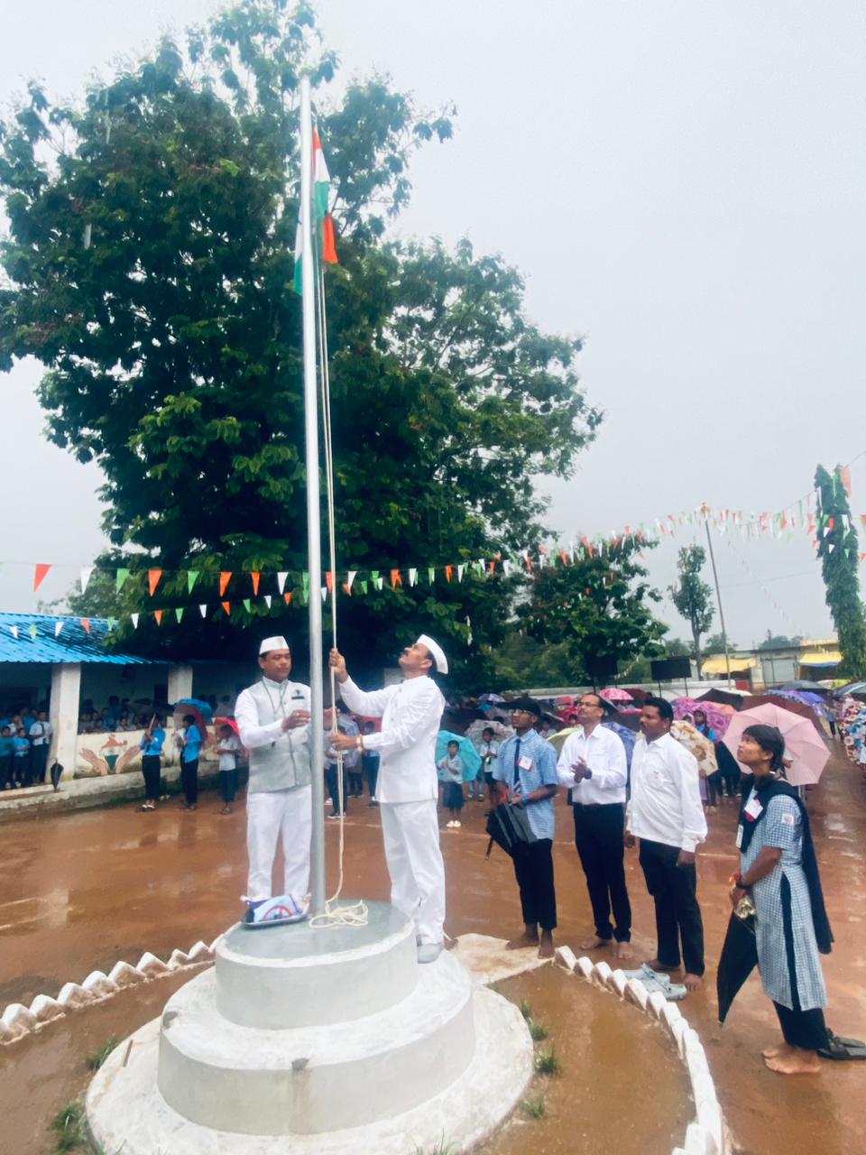 कोरची प्रतिनिधी प्रबोधिनी न्युज – येथील शासकीय माध्यमिक व उच्च माध्यमिक आश्रम शाळा कोरची येथील शाळेच्या पटांगणात भारतीय स्वातंत्र्याचा ७९ वा वर्धापन सोहळा शाळा व्यवस्थापन समितीचे अध्यक्ष हिरालाल ऊईके यांच्या अध्यक्षतेखाली भर पावसात मोठ्या उत्साहाने साजरा करण्यात आला.
