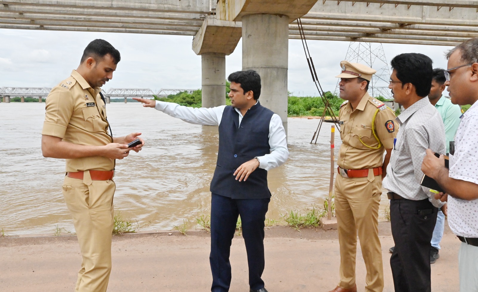चंद्रपूर – दि. 20 : जिल्ह्यात गत दोन – तीन दिवसांपासून सुरू असलेल्या पावसाच्या संततधारेमुळे जिल्ह्यातील नदी-नाले दुधडी भरून वाहत आहे. त्यातच इसापूर, पूस आणि लोअर वर्धा प्रकल्पातून मोठ्या प्रमाणात पाण्याचा विसर्ग सोडण्यात आल्यामुळे वर्धा नदीला पूर आला आहे. त्याचा फटका चंद्रपूर जिल्ह्यातील नदीकाठच्या गावांना बसला असून या पूरग्रस्त भागाची पाहणी करण्याकरीता जिल्हाधिकारी विनय गौडा जी.सी. यांनी आज (दि.20) बामणी – राजूरा पुलाची तसेच शिवनी चोर (ता. चंद्रपूर) येथील पूरग्रस्त भागाला भेट देऊन पाहणी केली.