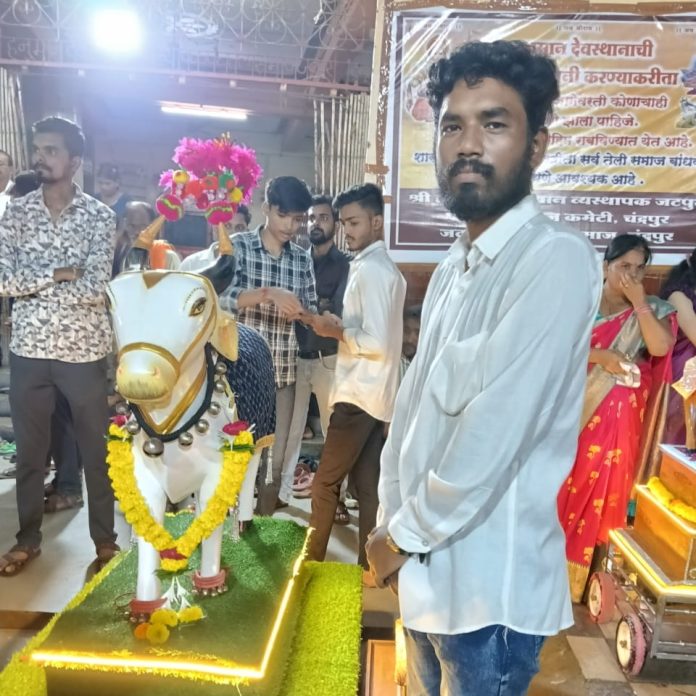 चंद्रपूर : आज जटपूरा वार्ड येथील पंच तेली समाज हनुमान मंदिर प्रांगणात पारंपरिक पद्धतीने *तान्हा पोळा* उत्सव मोठ्या उत्साहात साजरा करण्यात आला. ग्रामीण परंपरेशी जोडलेला हा उत्सव समाजात एकात्मता, संस्कार व संस्कृतीचे जतन करण्यासाठी अत्यंत महत्त्वाचा मानला जातो.