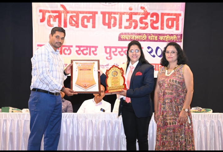 नम्रता सरदार मुख्य संपादिका प्रबोधिनी न्युज – पुणे – दिनांक 24 ऑगस्ट 2025 ला ग्लोबल फाउंडेशन महाराष्ट्र राज्य यांचे वतीने महाराष्ट्र मधील साहित्यिक, सामाजिक,शैक्षणिक,क्रीडा तसेच सांस्कृतिक इत्यादी विविध क्षेत्रांमध्ये अतुलनीय कार्य करणाऱ्या प्रतिभावान व्यक्तींचा सन्मान व गौरव करण्यात आला. या कार्यक्रमांमध्ये आद गायत्री अनिल रामटेके, बल्लारपूर जी. चंद्रपूर यांच्या कार्याचा आढावा घेऊन त्यांनी केलेल्या अतुलनीय कार्याबद्दल त्यांना “राज्यस्तरीय ग्लोबल स्टार पुरस्कार” ने सन्मानित करण्यात आले.
