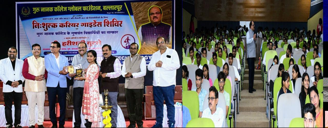 गुरुनानक कॉलेज बल्लारपूरचे माजी विद्यार्थी यांच्या संघटनेतर्फे स्थापन करण्यात आलेल्या गुरुनानक कॉलेज ग्लोबल फाउंडेशन बल्लारपूर तर्फे मोफत करिअर मार्गदर्शन कार्यक्रम व गुणवंत विद्यार्थ्यांचा सत्कार सोहळा काल सोमवार २५ ऑगस्ट रोजी दुपारी ३ वाजता बल्लारपूर येथील राजे बल्लाळशाह नाट्यगृह येथे मोठ्या उत्साहात पार पडला.