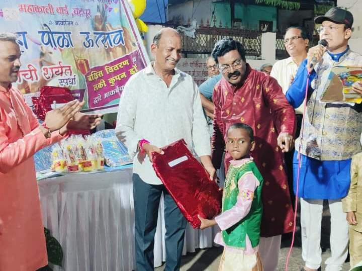 याशिवाय लकी ड्रॉमधून कृष्णा मल्लेलवार, हेमंत अंकुशे, श्रेयश रामपिल्लीवार व स्वरनिक खांडरे यांसह लहान बालकांना भेटवस्तू देण्यात आल्या. प्रत्येक सहभागी नंदीला देखील पारितोषिक देण्यात आले.