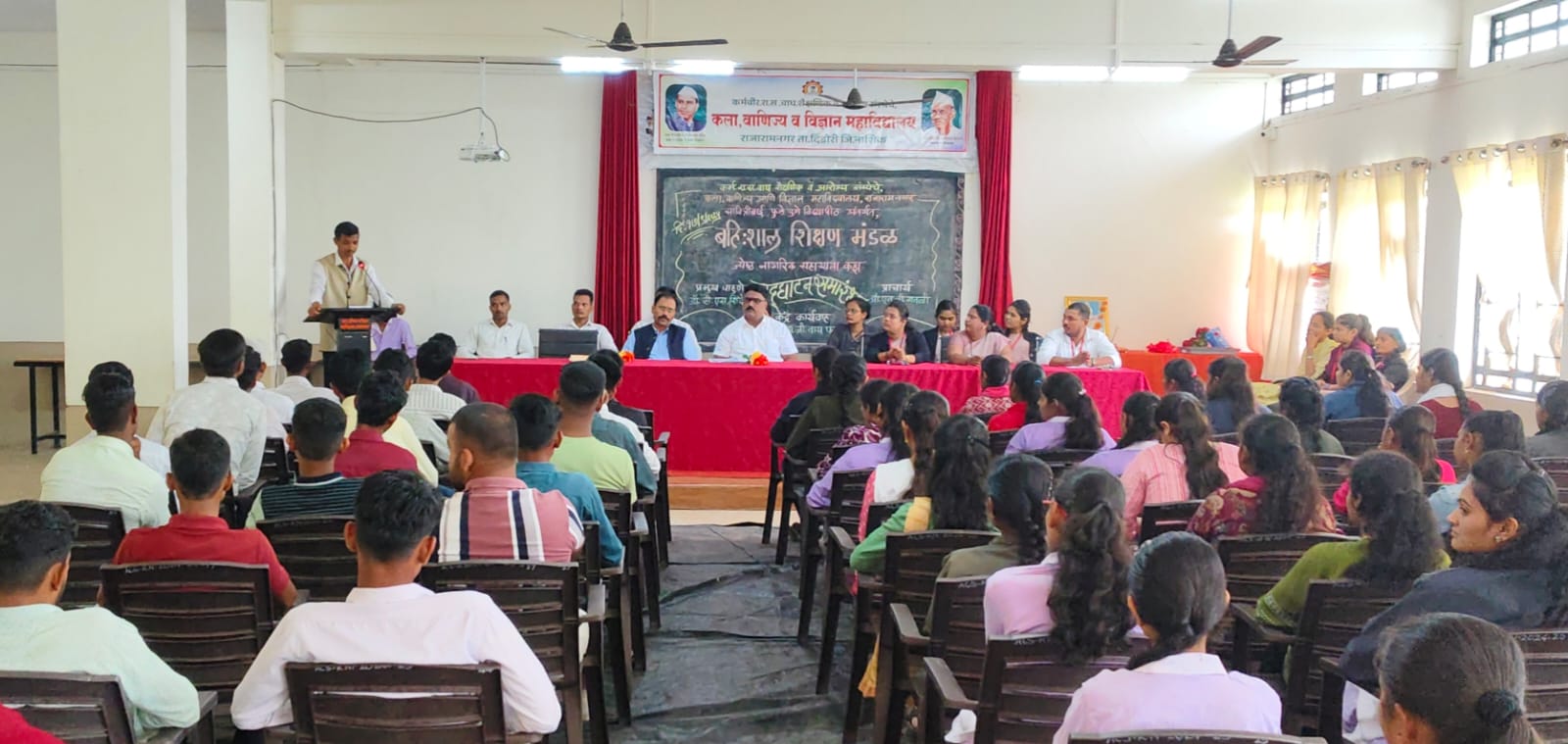 जगदीश वडजे नाशिक जिल्हा विशेष प्रतिनिधी – कर्मवीर राजाराम सखाराम वाघ शैक्षणिक व आरोग्य संस्थेचे-कला, वाणिज्य व विज्ञान महाविद्यालय राजारामनगर येथे बुधवार दिनांक 17/09/2025 रोजी सावित्रीबाई फुले पुणे विद्यापीठांतर्गत बहिःशाल शिक्षण मंडळाचे उद्घाटन खेडगाव महाविद्यालयाचे वाणिज्य विभाग प्रमुख प्रा.डॉ.व्ही.एस. शिंदे सर यांच्या हस्ते संपन्न झाले. प्रमुख अतिथी व वक्ते म्हणून प्रा. शिंदे यांनी संबंधित विभागाविषयी व त्याअंतर्गत येणाऱ्या डॉ.बाबासाहेब जयकर व्याख्यानमाला, तसेच ज्येष्ठ नागरिकांसाठीच्या व्याख्यानमाले सोबतच विविध कार्यक्रमांचे आयोजन केले जाते या विषयी उपस्थित विद्यार्थ्यांना सविस्तर माहिती देऊन मार्गदर्शन केले.