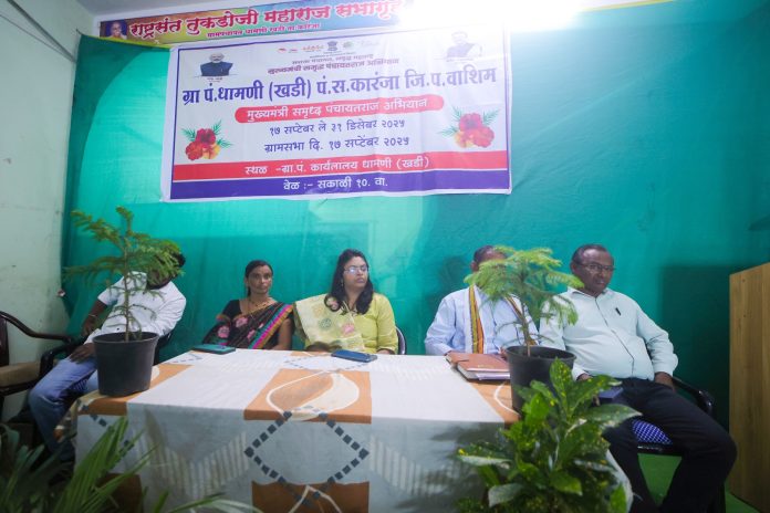 शारदा भुयार वाशिम जिल्हा प्रतिनिधी – कारंजा तालुक्यातील धामणीखडी येथे दिनांक 17 सप्टेंबर रोजी सकाळी 9 वाजता येथील कर्तव्यदक्ष गटविकास अधिकारी श्रीमती पूनम राणे यांच्या व विस्तार अधिकारी माधव साखरे, संजय भगत यांच्या मार्गदर्शनाखाली सदर कार्यक्रमाला सुरुवात करण्यात आली यामध्ये गावातील सरपंच महादेव खडसे यांच्या अध्यक्षतेखाली मान्यवरांच्या हस्ते वैराग्यमूर्ती संत गाडगे बाबा व बाबासाहेब आंबेडकर व महात्मा गांधी यांच्या प्रतिमेचे पूजन करण्यात आले मार्गदर्शनात संबोदतांना गटविकास अधिकारी पूनम राणे यांनी कारंजा तालुक्यातील 91 ग्रामपंचात मध्ये ह्या कार्यक्रमाची सुरुवात करण्यात आली असून सर्व गावात ह्या योजनेला उत्स्फूत असा प्रतिसाद जनतेमधून मिळतं असल्याचे सांगितले कारंजा तालुक्यातील आठ जिल्हा परिषद सर्कल निहाय संपर्क अधिकारी नेमून यांना प्रोसिडिंग लिहिण्याकरिता सचिव म्हणून नियुक्ती करण्यात आली व यांच्याकडे एकापेक्षा जास्त गावे असतील त्या ठिकाणी जी प.मराठी शाळेतील मुख्याध्यापक यांचा वर जबाबदारी दिली तसेच ग्रामपंचायत स्तरातील विविध शासकीय नीम शासकीय इतर सर्व विभागाचे अधिकारी कर्मचारी प्रतिनिधी यांनी ग्रामसभेला उपस्थित राहून आपल्या विभागांतर्गत सर्व योजनाचा लाभ कसा देता येईल कार्यक्रमाची माहिती तसेच अभियानामध्ये सक्रिय सहभाग नोंदवून विविध योजनेची माहिती दिली ह्या करिता गटविकास अधिकारी तथा प्रशासक पूनम राणे यांनी ग्रामस्थांना गावात आपल्या ग्रामपंचायतीला कसे बक्षीस प्राप्त होतील आणि त्या करिता सुधाषणयुक्त पंचायत स्वनिधी लोकवर्गणी जल समृद्ध स्वच्छ व हरित गाव मनरेगा व इतर योजनेचे अभिसरण लोकसहभाग व श्रमदान गावातील नागरिकांना सर्व सेवा ऑन लाइन पद्धतीने देणे आयुष्यमान भारत कार्ड व दिव्यांग ओळख पत्र करवसुली तक्रार निवारण CCTV बसविणे लेखापरीक्षण दप्तर अद्यावत ठेवणे ग्रामसभा घेणे शाळा सुविधा व अंगणवाडी सुविधा सक्षीमीकरण आरोग्य सेवा स्मशान भूमि व्यायाम शाळा बेघर्रांना घरकुल पात्र लाभार्थ्यांना जमीन उपलब्ध करून देणे बचत गट महिलांना सहभागी करून बँकेचे कर्ज वितरण करण शेतकरी उत्पादक संस्थांमध्ये महिलांचा सहभाग अनुसूचित जाती व नवबौद्ध वस्तीमध्ये पायाभूत सोयी टी. बी. मुक्त गाव इत्यादी सेवा जर ग्रामपंचायतने दिल्या तर गावाला भरपूर असे रकमेच्या स्वरूपात बक्षीस प्राप्त होऊ शकते असे आपल्या भाषणातू पूनम राणे यांनी ग्रामस्थांना सांगितले विस्तार अधिकारी श्री माधवराव साखरे यांनी ही ग्रामस्थांना विविध योजनेची माहिती दिली या कार्यक्रमाचे सूत्र संचालन ग्रामपंचायती अधिकारी श्री पांडुरंग गव्हाळे यांनी तर आभार सरपंच महादेव खडसे य