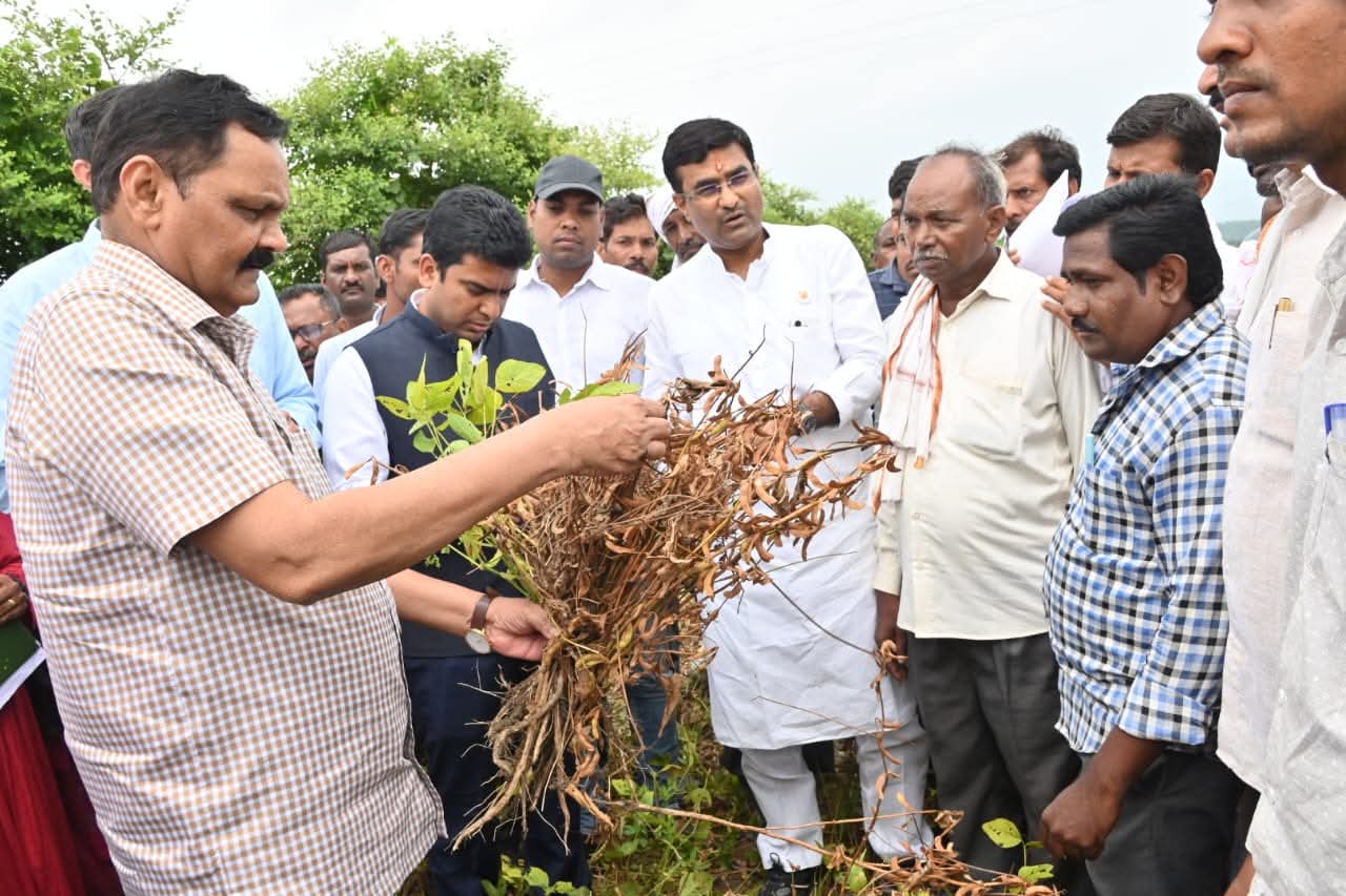 चिमूर तालुक्यातील भिसी येथे प्रकाश खाटीक व विलास खाटीक यांच्या शेतातील नुकसानग्रस्त सोयाबीनची पाहणी, वाहनगाव येथील बालाजी जुगनाके, बोथली येथील नितीन खापणे, खामगाव येथील शालू रामटेके तसेच वरोरा तालुक्यातील चारगाव (बु.) येथील प्रफुल्ल सोनकर, भेंडाळा येथील संजय उरकुडे या शेतकऱ्यांच्या शेतात जावून बाधित शेतमालाची पाहणी केली.