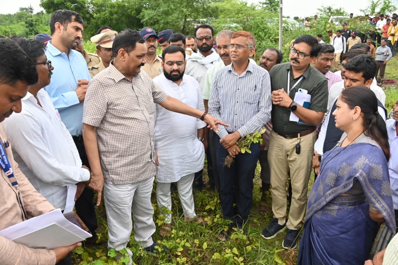 किशोर मडगुलवार जिल्हा संपादक, चंद्रपूर – दि. 24 : अतिवृष्टीमुळे नुकसान झालेल्या चिमूर आणि वरोरा तालुक्यातील शेतमालाची, राज्याचे आदिवासी विकास मंत्री तथा चंद्रपूर जिल्ह्याचे पालकमंत्री डॉ. अशोक उईके यांनी आज (दि.24) बांधावर जाऊन पाहणी केली व शेतक-यांसोबत संवाद साधला. यावेळी त्यांच्यासोबत राज्याचे कृषी राज्यमंत्री आशिष जयस्वाल होते.