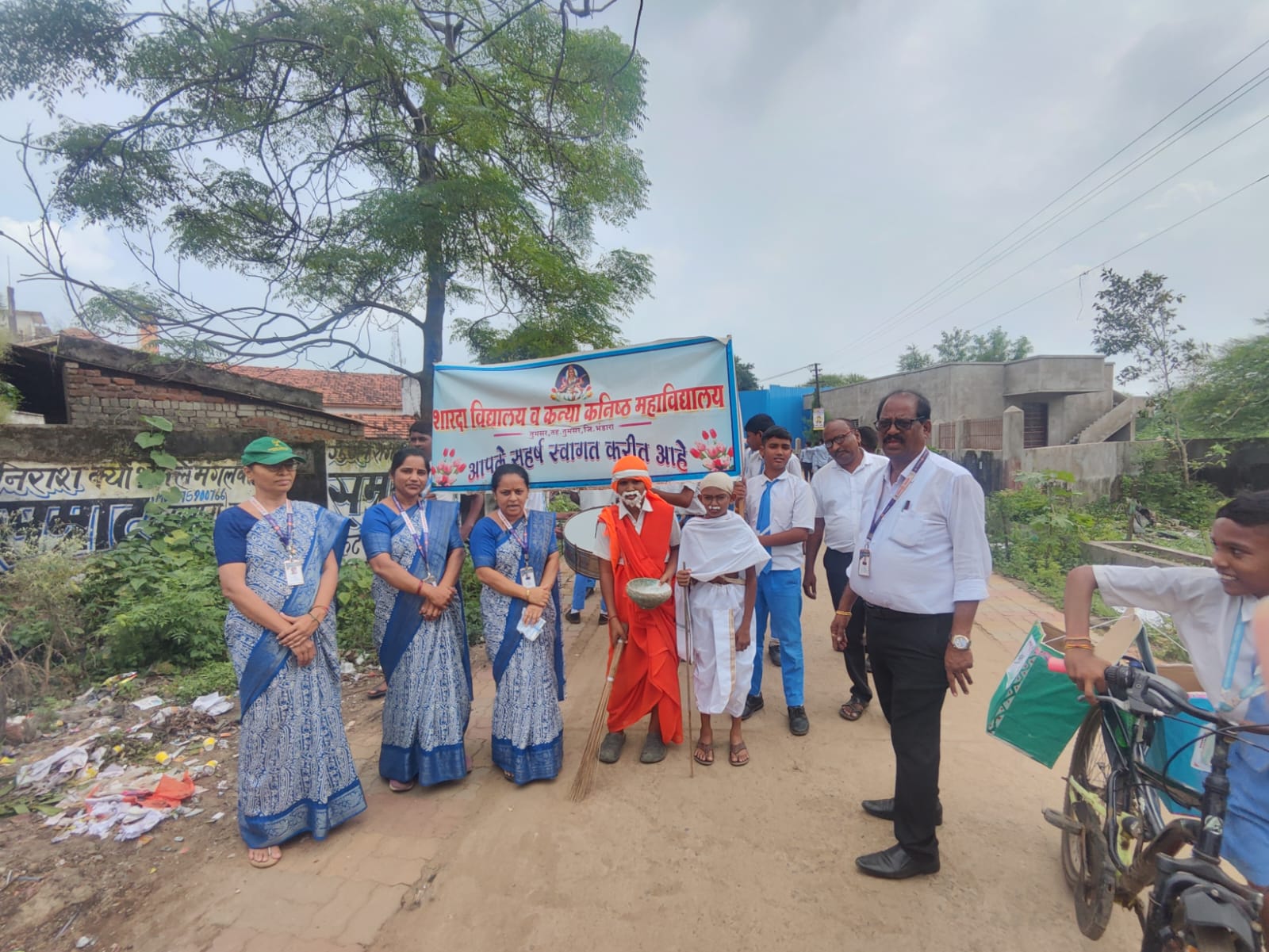 रॅलीत राष्ट्रपिता महात्मा गांधी व राष्ट्रसंत गाडगे महाराज यांच्या वेशभूषेत विद्यार्थी सहभागी झाले होते. स्वच्छतेचा संदेश देणारे हे रूप नागरिकांचे विशेष आकर्षण ठरले. गांधीजी व गाडगे महाराज यांच्या विचारांचा संदर्भ देत विद्यार्थ्यांनी “आपला परिसर स्वच्छ ठेवा”, “स्वच्छतेतच आरोग्य आहे”, “स्वच्छ भारत – सुंदर भारत” अशा प्रभावी घोषणांनी वातावरण दणाणून टाकले.