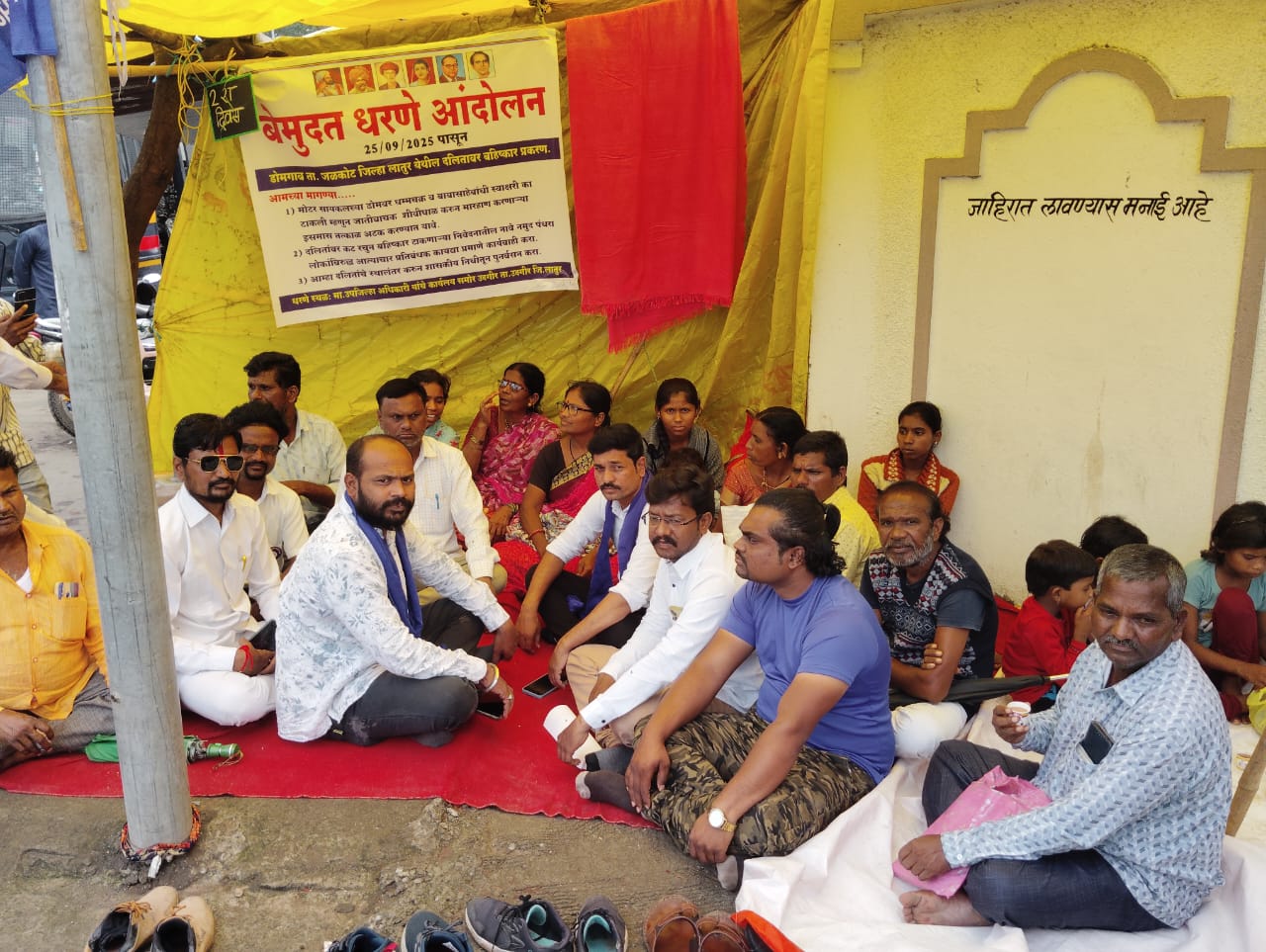 बौद्ध समाजांनी उदगीर येथील उपजिल्हाधिकारी कार्यालयासमोर आपल्या लहान मुला बाळासह भर पावसामध्ये बेमुदत धरणे आंदोलन सुरू असून उप जिल्हाधिकारी याचे कडून तरी काय न्याय मिळेल का या अशाने बौद्ध समाज भीती पोटी आपला जीव वाचवा म्हणून करत आहेत आंदोलनाच्या दुसऱ्या दिवशी भीम आर्मीच्या वतीने जाहीर पाठिंबा दिला उदगीर उपजिल्हाधिकारी यांना निवेदन देऊन संबंधित आरोपी वरती कायदेशीर कारवाई करून पीडित कुटुंबांना न्याय देवून त्यांचे तत्काळ पुनर्वसन जळकोट शहरांमध्ये करावे असे निवेदनात मागणी केली आहे.यावेळी भीम आर्मीचे माजी मराठवाडा अध्यक्ष,,भीम आर्मी लातूर जिल्हा कार्याध्यक्ष बबलू गवळे, लातूर शहर अध्यक्ष संदीप कांबळे, उदगीर शहराध्यक्ष राहुल कांबळे, आदी भीम आर्मीचे पदाधिकारी हजर होते.