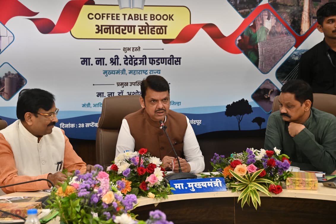 मुल (जि. चंद्रपूर) येथील विश्रामगृहात, जिल्हा खनिज प्रतिष्ठानच्या वतीने तयार करण्यात आलेल्या कॉफी टेबल बुकचे अनावरण करताना मुख्यमंत्री बोलत होते. यावेळी राज्याचे आदिवासी विकास मंत्री तथा चंद्रपूर जिल्ह्याचे पालकमंत्री डॉ. अशोक उईके, आमदार सर्वश्री सुधीर मुनगंटीवार, किशोर जोरगेवार, देवराव भोंगळे यांच्यासह जिल्हाधिकारी विनय गौडा, मुख्य कार्यकारी अधिकारी पुलकित सिंह अतिरिक्त जिल्हाधिकारी डॉ. नितीन व्यवहारे, जिल्हा खनिकर्म अधिकारी रोहन ठवरे व इतर अधिकारी उपस्थित होते.