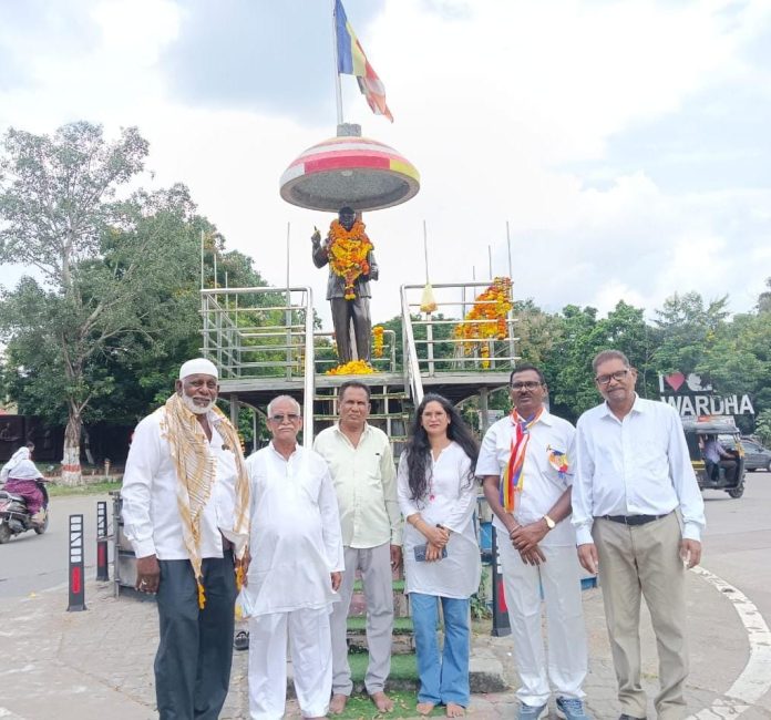 वर्धा प्रतिनिधी प्रबोधिनी न्युज – वर्धा शहरातील सिव्हिल लाईन येथे 69 व्या धम्मचक्र परिवर्तन दिन व सम्राट अशोका विजया दशमी दिनानिमित्य कार्यक्रमाचे आयोजन सामाजिक कार्यकर्ते पद्माकर कांबळे यांनी केले होते.सर्व प्रथम डॉ.बाबासाहेब आंबेडकर यांच्या पूर्णाकृती पुतळाला पुष्प हार घालून बुद्ध वंदना घेण्यात आली. यावेळी बुद्ध उपासक व उपाशिका यांनी ग्रहण केले.त्यानंतर पद्माकर कांबळे यांनी धम्म चक्र परिवर्तन दिनाचे बौद्ध बांधवांना धम्म चक्र परिवर्तन दिनाच्या व सम्राट अशोका विजयादक्षमी दिनाच्या शुभेच्छा देऊन कांबळे यांनी गीत गायन केले.