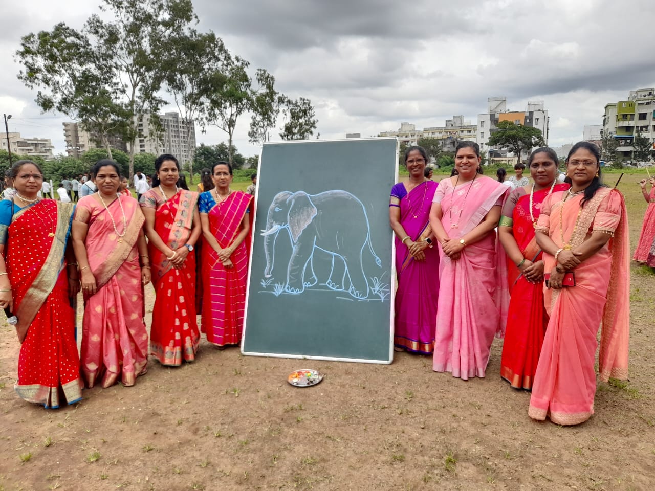 चित्रकला शिक्षक विश्वकर्मा चव्हाण यांनी फलकावर सुंदर हत्ती चित्र रेखाटन केले . शाळेच्या प्रशस्त क्रिडांगणावर मध्यभागी ठेवलेल्या हत्तीच्या प्रतिमेचे पर्यवेक्षिका शामला पंडित यांनी हार फुल वाहून पूजन केले . विद्यार्थ्यांनी फेर धरून टीपरीच्या तालावर भोंडला गीते सादर केली. अध्यापिका सुषमा शेवाळे, ज्योती घरबुडे, वृंदा क्षीरसागर, कविता बुरूड, वर्षा पाटील, दिपाली काळे, मनिषा सांडभोर , अध्यापक दिनेश बोरचटे,पवन खराडे, आबा वारघडे यांनी कार्यक्रम संयोजन व आयोजन केले. दत्तात्रय बुर्डे मामा, रमेश मामा यांनी माईक व्यवस्था पाहिली. भोंडल्यानंतर सर्व विद्यार्थ्यांना खिरापत वाटण्यात आली.