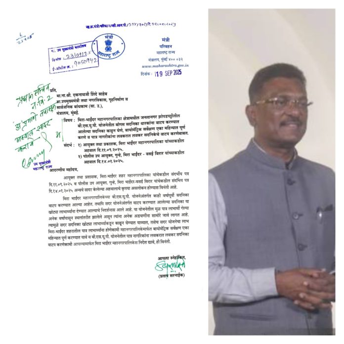 या निर्णयामुळे मीरा-भाईंदरमधील शेकडो कुटुंबांना दिलासा मिळणार असून शहराच्या सर्वांगीण विकासाला गती मिळणार आहे.