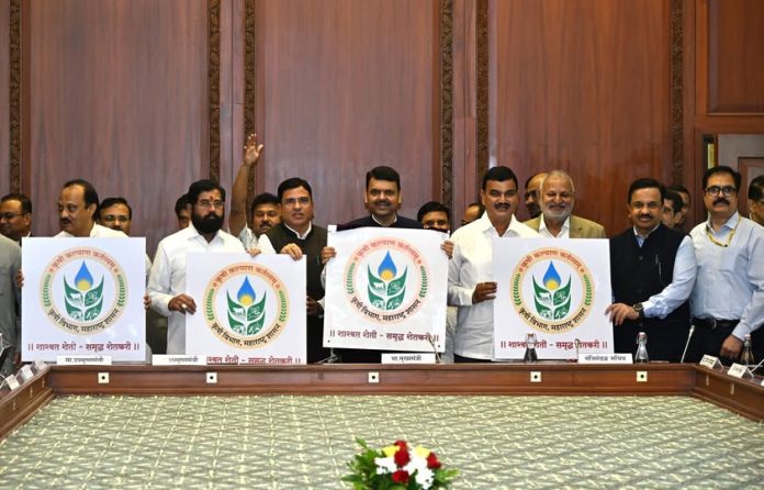 चंद्रपूर, दि. 11 : मुख्यमंत्री देवेंद्र फडणवीस यांनी आज सह्याद्री अतिथीगृह, मुंबई येथे राज्य कृषी विभागाच्या नवीन बोधचिन्हाचे तसेच ‘शाश्वत शेती – समृद्ध शेतकरी’ या नवीन घोषवाक्याचे अनावरण केले. यावेळी उपमुख्यमंत्री एकनाथ शिंदे, अजित पवार, कृषी मंत्री दत्तात्रय भरणे, मंत्री सर्वश्री चंद्रशेखर बावनकुळे, माणिकराव कोकाटे, हसन मुश्रीफ, गिरीश महाजन, राज्यमंत्री ॲड. आशिष जयस्वाल, मुख्य सचिव राजेश कुमार, कृषि आयुक्त सुरज मांढरे, उपसचिव प्रफुल्ल ठाकूर, संचालक रफिक नाईकवाडी, कृषी विभागाचे अधिकारी आणि कर्मचारी उपस्थित होते. बोधचिन्ह स्पर्धेतील विजेता आणि घोषवाक्य स्पर्धेतील विजेत्यांचा यावेळी सत्कार करण्यात आला.