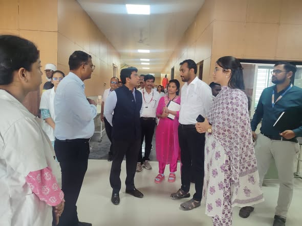 यानंतर मौजा भंगाराम तळोधी येथील स्मार्ट प्राथमिक आरोग्य केंद्रास भेट दिली. या वेळी त्यांनी वैद्यकीय अधिकाऱ्यांशी संवाद साधून रुग्णालयातील वॉर्ड, यंत्रसामग्री, औषधसाठा तसेच इतर आवश्यक सुविधांची माहिती घेतली आणि आरोग्यसेवा अधिक सक्षम करण्याच्या सूचना दिल्या. तसेच मौजा वढोली येथे स्थापन करण्यात आलेल्या 40 केडब्ल्यूपी सोलरायझेशनसह पाणीपुरवठा योजना स्थळाची पाहणी करताना त्यांनी कामाची गुणवत्ता सुनिश्चित करण्याचे आदेश दिले.