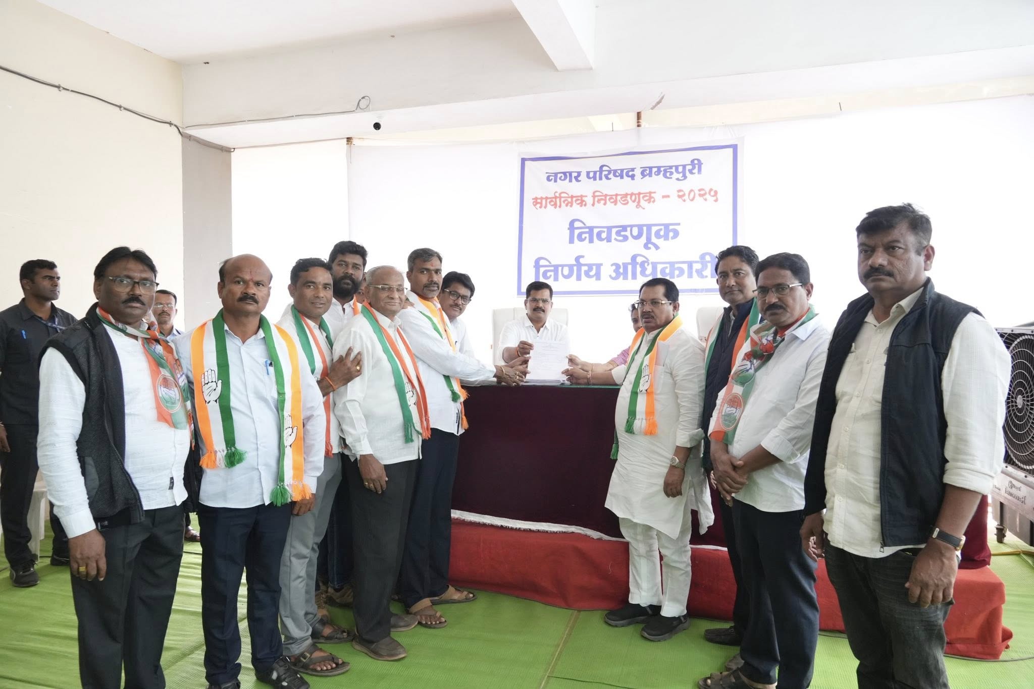 आज ब्रम्हपुरी नगरपरिषदेच्या सार्वत्रिक निवडणुकीकरिता काँग्रेस व वंचित बहुजन आघाडी प्रणित पॅनलचे नगराध्यक्ष पदासह एकूण २४ उमेदवारांचे नामांकन अर्ज हजारों कार्यकर्त्यांच्या साक्षीने दाखल करण्यात आले.