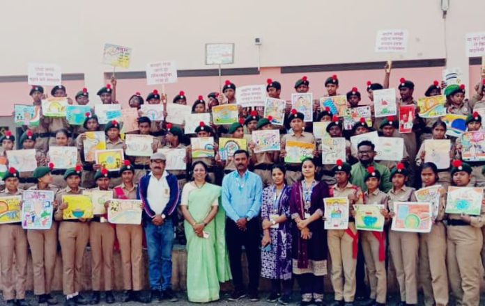 एनसीसी अधिकारी अमोल काळे यांच्या मार्गदर्शनाखाली विद्यार्थ्यांनी मतदानाचे महत्त्व, सुजाण नागरिकत्व आणि लोकशाहीची ताकद यांचा प्रभावी संदेश देणारी चित्रे व घोषवाक्ये मांडली.