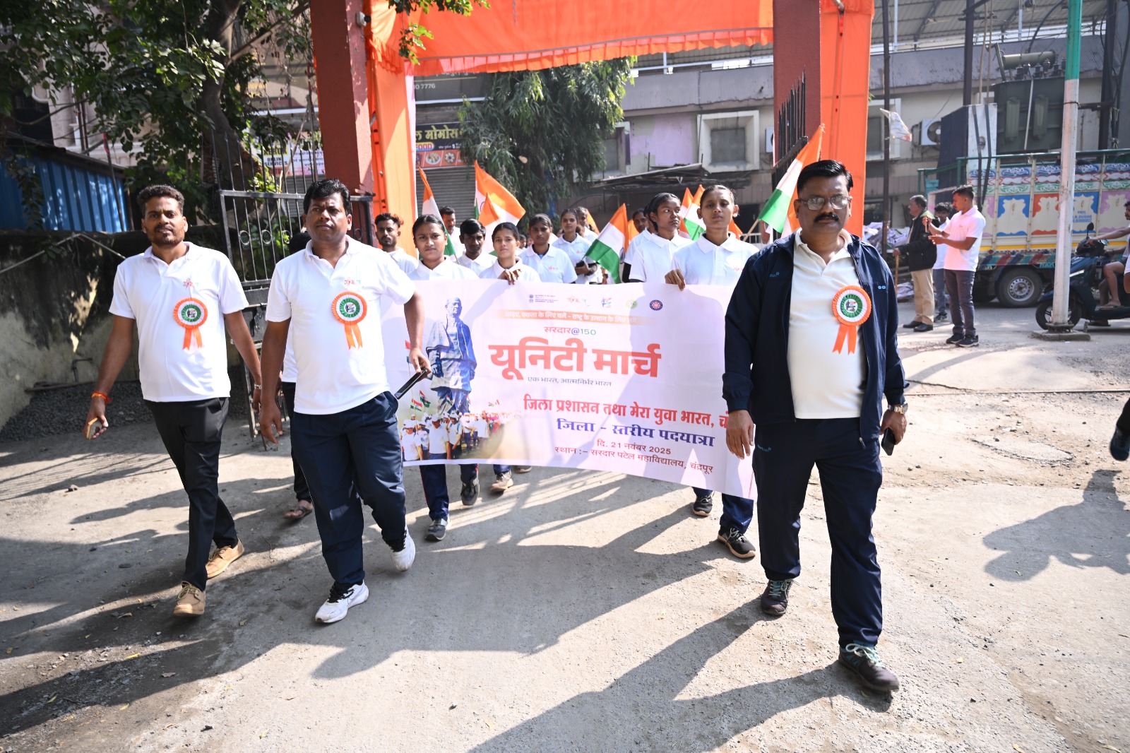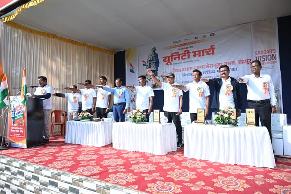 चंद्रपूर – दि. 21 जिल्हा प्रशासन आणि युवा कार्यक्रम व क्रीडा मंत्रालय, भारत सरकार यांच्या मेरा युवा भारत, चंद्रपूर तर्फे सरदार @ 150 जिल्हास्तरीय युनिटी/पदयात्रेचे आयोजन सरदार पटेल महाविद्यालय, चंद्रपूर येथे करण्यात आले. कार्यक्रमाचा शुभारंभ प्रा. डॉ. गुरुदास बाल्की, एन.एस.एस. जिल्हा समन्वयक यांच्या हस्ते दीपप्रज्वलनाने झाला.
