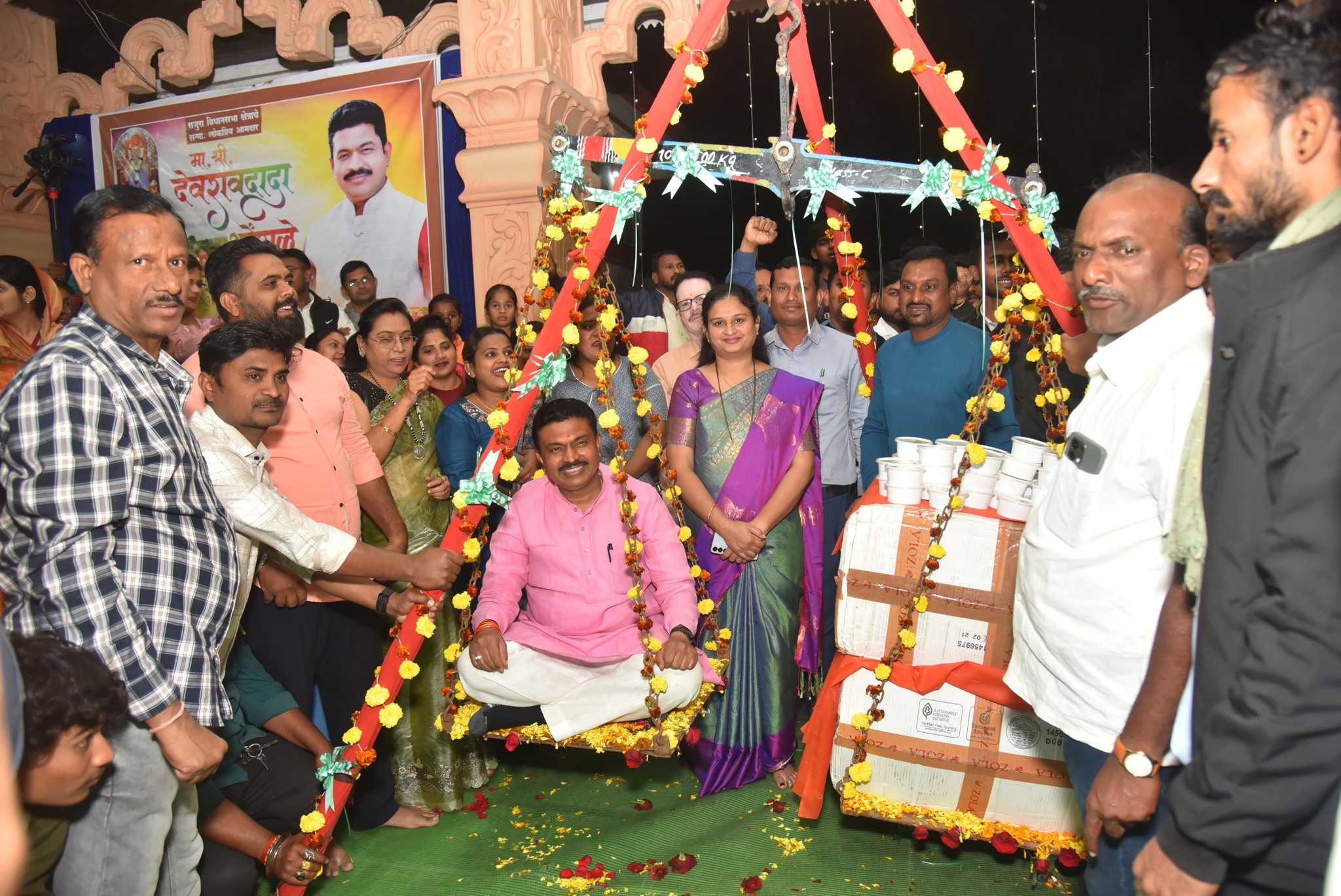आमदार देवराव भोंगळे यांच्या वाढदिवसानिमित्त लाडू तुला कार्यक्रम उत्साहात साजरा