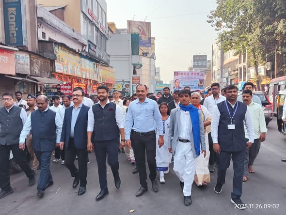 पुणे : डॉ. बाबासाहेब आंबेडकर संशोधन व प्रशिक्षण संस्था (बार्टी) आणि सहायक आयुक्त समाजकल्याण पुण्यातील संविधान प्रेमी नागरिक यांच्या संयुक्त विद्यमाने संविधान दिनानिमित्त ‘वॉक फॉर संविधान’ रॅली आयोजित करण्यात आली या रॅलीचे उद्घाटन विभागीय आयुक्त डॉ. चंद्रकांत पुलकुंडवार यांच्या हस्ते झाले. यावेळी बार्टीचे महासंचालक सुनील वारे, यशदाचे उप महासंचालक डॉ. मल्लिनाथ कलशेट्टी, बार्टीचे निबंधक विशाल लोंढे, बार्टीचे विभागप्रमुख डॉ. बबन जोगदंड यांची प्रमुख उपस्थिती होती.