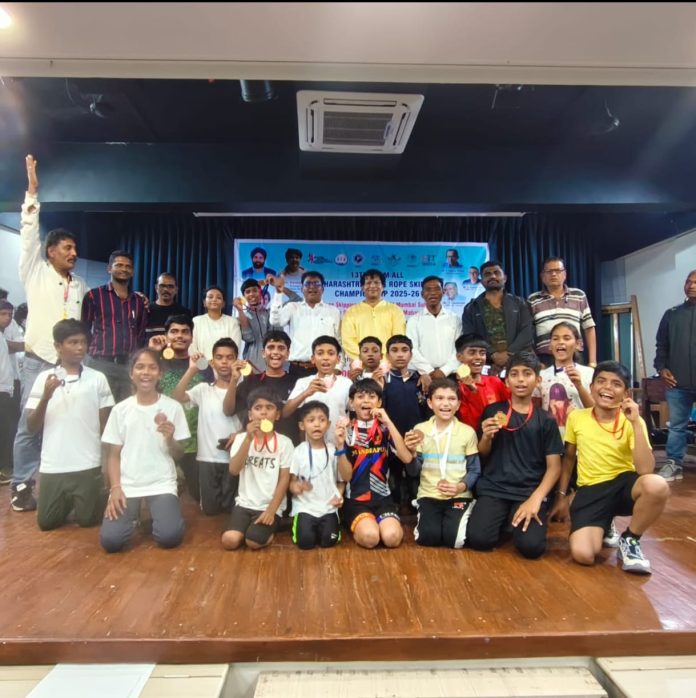 चंद्रपुर डिस्ट्रिक्ट अमेचुअर रोप स्कीप्पिंग असोसिएशन ® शी संलग्न..आयुध स्पोर्टस् अकादमी, आयुध कराटे अकादमी,अंकुर विद्या मंदिर स्कूल, आयुध निर्माणी चांदा , भद्रावती चे खेळाडू *01)* दीक्षांत रामटेके ..02 गोल्ड मेडल अँड 01 सिल्वर मेडल 02) दीक्षांत सोनारकर .. 1गोल्ड मेडल, ब्राँझ मेडल 03) स्मित कुलसंगे ..1 सिल्वर 04) अर्पित जांगिड ..02 ब्राँझ मेडल 05) रुद्रप्रताप थिटे .. गोल्ड मेडल 06) रणवीर थिटे .. गोल्ड मेडल 07) मीत राजुरकर .. 1सिल्वर और 1 ब्राँझ मेडल तर भद्रानाग स्पोर्ट्स अकादमी* ,जिल्हा परिषद हायस्कूल, भद्रावती च्या 08) नैतिक झांबडे … सिल्व्हर मेडल तसेच आयुषी स्पोर्ट्स अकादमी, चंद्रपुर चंद्रपूर तालुका शाखा 09) आर्यवीर राठोड .. गोल्ड मेडल 10) अमीन खान.. गोल्ड मेडल 11) ईशान शेख.. गोल्ड मेडल आयुषी स्पोर्ट्स अकादमी, चंद्रपुर राजुरा,गडचांदुर,कोरपना तालुका शाखा