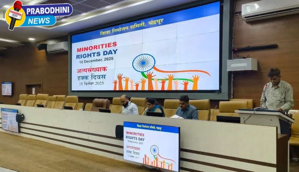 चंद्रपूर प्रतिनिधी प्रबोधिनी न्युज – दि. 23 : राज्य शासनाने दिलेल्या निर्देशानुसार जिल्हा नियोजन भवन येथे अल्पसंख्याक हक्क दिनाचे आयोजन नुकतेच करण्यात आले. कार्यक्रमाला प्र. जिल्हा नियोजन अधिकारी तथा जिल्हा अल्पसंख्यांक अधिकारी सुभाष कुमरे, सहायक संशोधन अधिकारी सोमेश्वर पी. राऊत, शिक्षणाधिकारी(माध्यमिक) राजेश पाताळे, सहायक संचालक अनिसा तडवी, औद्योगिक संस्थेचे प्राचार्य (मुलींची) कल्पना खोब्रागडे, मौलाना आझाद महामंडळाचे जिल्हा व्यवस्थापक ओवेस अंसारी तसेच सर्व अल्पसंख्यांक समुदायातील प्रतिनिधी उपस्थित होते.