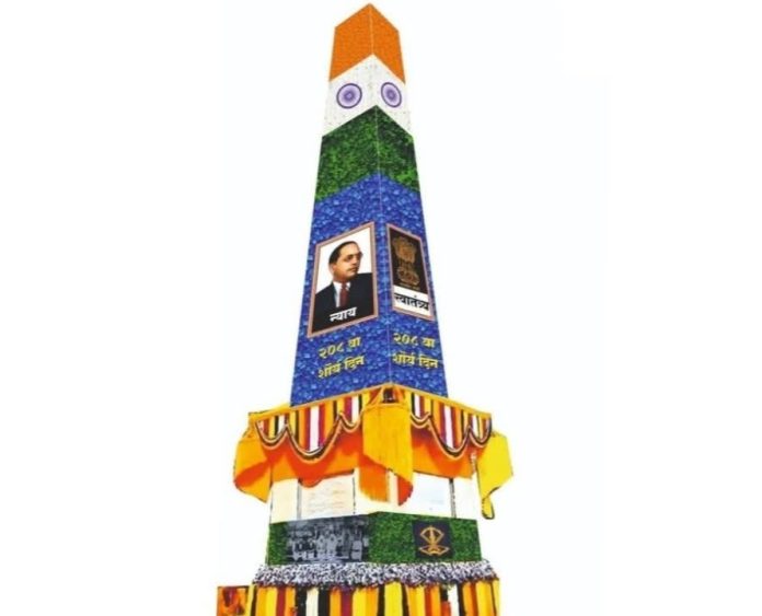 कोरेगाव भीमा-पेरणे (ता. हवेली) येथे 1 जानेवारी 2026 रोजी 208 वा शौर्यदिन साजरा होत आहे. जिल्हाधिकारी यांच्या परवानगीने जयस्तंभाला भारतीय संविधान व डॉ. बाबासाहेब आंबेडकर यांचे तैलचित्र तसेच अशोक चक्र असलेला निळा ध्वज आणि जयस्तंभाच्या सजावटीमध्ये राजमुद्रा दिसणार आहे. एकूणच कोरेगाव भीमा जयस्तंभास यावर्षी विशेष सजावट होणार आहे.
