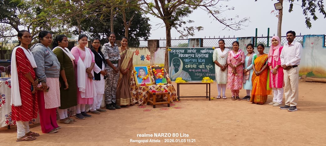 सिरोंचा- दिनांक 3 जानेवारी 2026 कस्तुरबा गांधी बालिका विद्यालय सिरोंचा शाळेत आज दिनांक 3 जानेवारी 2026 रोजी क्रांतीज्योती सावित्रीबाई फुले यांच्या 194 व्या जयंती अतिशय उत्साहात साजरा करण्यात आला. या बालिका दिनाच्या औचित्य साधून शाळेचे मुख्याध्यापिका मनीषा साखरे मॅडम यांच्या अध्यक्षतेखाली आयोजित या कार्यक्रमाचे प्रमुख पाहुणे म्हणून लाभलेले मा.प्रांजली कुलकर्णी ( पोलीस उपनिरीक्षक) तसेच सुनीता भगत ( मुक्तीपथ तालुका समन्वयक) विद्यार्थी पालक प्रतिनिधी म्हणून श्रीमती.सुवर्णाताई कोंडा यांच्या प्रमुख उपस्थितीत विद्यार्थ्यांनी सावित्री फुले आणि ज्योतिराव फुले यांच्या वेशभूषा परिधान करून नाविन्यपूर्ण पद्धतीने विद्यार्थ्यांनी सहभाग घेतले. कार्यक्रमाचे प्रमुख पाहुण्याच्या स्थानावरून बोलताना कुलकर्णी मॅडम म्हणाले की,एक महान माऊलीने स्त्रियांसाठी शिक्षणाची दारे उघडली जर सावित्री नसत्या,तर आज मी इथे बोलू शकले नसते, आणि तुम्ही समोर बसून शिकू शकले नसते. यावर अधोरेखित करत त्यांनी विद्यार्थिनींना मोलाचे मार्गदर्शन केले. त्यानंतर सुनीता भगत मॅडम यांनी सावित्रीबाईंनी सोसलेल्या दगड माती झेलून दिलेल्या शिक्षणामुळेच आज अनेक क्षेत्रात जसे की,महिला डॉक्टर, इंजिनियर, शिक्षिका वकील, बँक मॅनेजर्स असे मोठमोठ्या पदावर पुरुषांबरोबर महिला कार्यरत आहेत यावर प्रकाश टाकले, मात्र विशिष्ट वयात वेगळा वळण सुद्धा लागू शकते, वाईट मार्गाने जाणे, कमी वयातील झालेल्या लग्नामुळे अनेक दुष्परिणाम होताना दिसतात त्यापासून आपण सावध राहायला पाहिजे यावर त्यांनी मार्गदर्शन केले. त्यानंतर अध्यक्षीय भाषणात मुख्याध्यापिका साखरे मॅडम यांनी कस्तुरबा गांधी बालिका विद्यालयातील यश प्राप्त केलेल्या माजी विद्यार्थिनीचा आढावा घेत सावित्रीबाई ज्योतिराव फुले यांच्या जीवनावर आधारित सादर केलेल्या गीत गायन, नाटक,विद्यार्थ्यांचे मनोगत, एकपात्री *होय मी सावित्री* यावर विद्यार्थ्यांनी सादर केलेल्या मुलींचे अभिनंदन करत, हे सर्व विद्यार्थी माझे सावित्रीच्या लेकी आहेत ‘ ‘ *माझे सावित्री* ‘ असे गौरवोद्गार काढले, पुढे त्यांनी विद्यार्थ्यांना उद्देशून म्हणाले की, आपण शिक्षण घेऊन आपल्या कुटुंबाच्या नाव, शाळेचे नाव, पर्यायाने स्व जिल्ह्याचा व देशाचं नाव उज्वल केले पाहिजेत असे प्रेरणादायी मार्गदर्शन केले. या कार्यक्रमाचे संचालन विद्यार्थिनी कुमारी. जेला कोनम, रितीशा कोंडा यांनी तर उपस्थित मान्यवरांचे आभार श्री आर.अट्टेला यांनी मानले. या कार्यक्रमासाठी वसतिगृहप्रमुख, लेखापाल, सर्व शिक्षक वृंद, शिक्षकेतर कर्मचारी मोठ्या संख्येने उपस्थित होते, कार्यक्रमाचे यशस्वीतेसाठी विद्यार्थ्यां