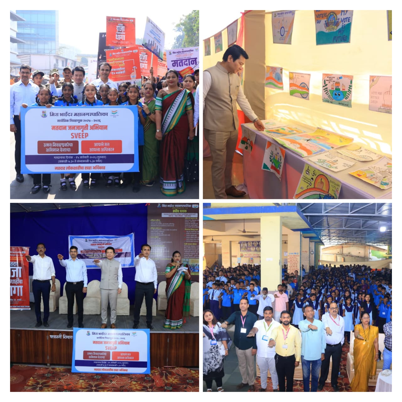 मिरा भाईंदर महानगरपालिकेच्या माहिती व जनसंपर्क विभागामार्फत तसेच SVEEP (Systematic Voters’ Education and Electoral Participation) अभियानाअंतर्गत शाळा क्रमांक ०४ येथे मतदान जनजागृती कार्यक्रमाचे आयोजन करण्यात आले होते. या कार्यक्रमास महापालिकेचे मा. आयुक्त तथा मुख्य निवडणूक अधिकारी यांच्या प्रमुख उपस्थितीत आयोजन करण्यात आले.