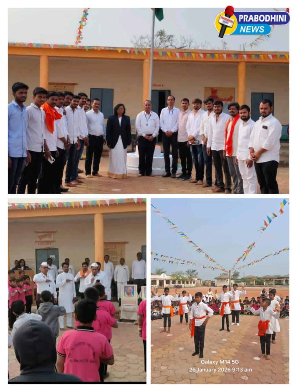 हिंगोली प्रतिनिधी प्रबोधिनी न्युज नेटवर्क – वसमत : दिनांक 26 जानेवारी 2026 रोजी प्रशाला जवळाबाजार येथे सकाळी आठ वाजून वीस मिनिटाला ध्वजारोहण कार्यक्रम प्रशालेचे मुख्याध्यापक राठोड, केंद्रीय प्राथमिक शाळा जवळाबाजार येथील मुख्याध्यापक, प्रशा उर्दू मुख्याध्यापक जावेद व तिन्ही शाळेचे शालेय व्यवस्थापन समितीचे अध्यक्ष उपाध्यक्ष व केंद्रप्रमुख कादर सर यांनी प्रतिमेचे पूजन केले आणि ध्वजारोहण राठोड यांच्या हस्ते करण्यात आले त्यानंतर तिन्ही शाळा मिळून सांस्कृतिक कार्यक्रमाचे आयोजन केले यात सर्वोत्कृष्ट नृत्य, पाणी हरवले हे भारुड, सौगंध इस मिट्टी की हे गीत आणि उत्कृष्ट अशी भाषणे प्रशाला जवळा बाजार येथील विद्यार्थ्यांनी केले त्यात लक्ष्मी खंदारे, गणेश जाधव समर्थ वाजे देवानंद गाढवे जानवी कटारे कृष्णा जाधव समर्थ वाजे या विद्यार्थ्यांनी सहभाग नोंदवला तसेच प्रथमेश लंगोटे या विद्यार्थ्यांनी इंग्लिश मधील पोएम म्हणून सुंदर आवाजात म्हणून दाखवली केंद्रीय प्राथमिक शाळा जवळा बाजार व हायस्कूल जवळा बाजार सुंदर अशी लेझीम कवायत याचे सादरीकरण केले सारे जहाँ से अच्छा हिंदुस्तान हमारा हे सुंदर नृत्य प्राशा उर्दू जवळा बाजार यांनी सादर केले या कार्यक्रमाचे सुंदर असे सूत्रसंचालन पाटील यांनी केले हा संस्कृतिक कार्यक्रमासाठी मुळे, वर्षा, कराड, पटले, सोनवणे, भोसले, साखरे, पावडे व पाटील यांनी सहभाग नोंदविला. यानंतर माजी विद्यार्थी संघ यांची बैठक घेण्यात आली या बैठकीमध्ये लोकसहभाग निधी, विद्यार्थ्यांची गुणवत्ता विकास, स्वच्छता, इत्यादी मुद्द्याचा विचार करून माजी विद्यार्थ्यांचे बँक खाते तयार करून ताबडतोब माजी विद्यार्थ्यांनी निधी जमा केला मुलांचा सहभाग म्हणून देवीला यात गणेश शेटे शिवम परिवार संजय पारदे इत्यादी विद्यार्थ्यांनी सहभाग नोंदविला मार्गदर्शन श्रीमती पाटील मॅडम यांनी मुलांना केले तसेच काही सूचना व तयारी मार्गदर्शन श्री राठोड सर यांनी केले शेवटी आभार प्रदर्शन श्रीमती पाटील मॅडम यांनी केला. Student of the year 2015_2026 प्रमाणपत्र वितरण करण्यात आले यात इयत्ता दहावीचा विद्यार्थी शेख और सलान रिजवान आणि दुसरा विद्यार्थी नी लक्ष्मीखंदारे यांना प्रमाणपत्राचे वितरण करण्यात आले..