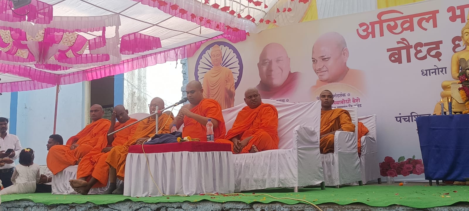 मानवी जन्म अत्यंत दुर्मिळ असून तो व्यसनांमध्ये वाया घालवू नका, असे आवाहनही भंतेजींनी केले. मद्यपान, तंबाखू आणि जुगार यांसारखी व्यसने केवळ शरीरच नाही, तर संपूर्ण कुटुंब उद्ध्वस्त करतात. जीवनात प्रगती करण्यासाठी आत्मशिस्त आणि इंद्रियांवर ताबा मिळवणे आवश्यक आहे. या धम्म परिषदेच्या अध्यक्ष स्थानी भदंत महाविरो थेरो काळेगाव , प्रमुख मार्गदर्शक भदंत पय्याबोधी थेरो खुरगांव नांदेड , भदंत पय्यानंद थेरो लातूर , भंत्ते सारीपुत्र , भंत्ते श्रद्धानंद आदी भिक्खूसंघ श्रामणेर धम्मपीठावर उपस्थित होते . भदंत पय्यानंद थेरो हे धम्म परिषदेचे उद्घाटन प्रसंगी म्हणाले की, धम्म परिषद चिंतन करण्यासाठी असलेल्या एक मोठा उत्सव आहे . धम्म परिषद हे या आपल्या समाजामध्ये आपली संस्कृती रुजवण्यासाठी किंवा आपली संस्कृती लोकांच्या दाखविण्यासाठी संस्कृतीचा अभ्यास करण्यासाठी धम्म परिषद आहेत . भंत्ते सारीपुत्र , भंत्ते श्रद्धानंद यांनी जनसमुद्यांना धम्म देशना दिली . भदंत महाविरो थेरो यांनी अध्यक्षीय समारोप प्रसंगी पंचशील ,अष्टांग मार्ग यांचे पालन केल्यास मानवाचे जीवन सुख कर होते . सकाळी ९:३० वाजता सरपंच एंगडे यांच्या हस्ते पंचशील ध्वजारोहण केले . त्यानंतर तथागत गौतम बुद्ध व बोधिसत्व डॉ बाबासाहेब आंबेडकर यांच्या प्रतिमेची गावातून धम्म मिरवणूक काढण्यात आली .या धम्म मिरवणुकीत भिक्खू संघ श्रामणेर व शुभ्र वस्त्र परिधान करून उपासक उपासिका सहभाग घेवून तथागत गौतम बुद्ध आणि बोधी सत्व डॉ बाबासाहेब आंबेडकरांचा जय असो ,असे जयघोष करत धम्म रॅली करण्यात आली .बुद्ध धम्म परिषद समितीच्या वतीने राज्याचे उपमुख्यमंत्री अजितदादा पवार यांना वाहिली श्रद्धांजली .या कार्यक्रमाचे सूत्रसंचालन नागराज एंगडे यांनी केले. या धम्म परिषदेला रिपाईचे मधूकर मांजरमकर , मुगोजी खंदारे, सरपंच राजरत्न कुंटे, बालाजी शिवभगत,श्रीरंग थोरात, विजयकुमार एंगडे, चंद्रमुनी मस्के ,बालाजी मस्के यांच्यासह डॉ बाबासाहेब आंबेडकर सांस्कृतीक सभागृह समितीचे पदाधिकारी व धानोरा परिसरातील उपासक उपासिका बहुसंख्येने उपस्थित होते ही धम्म परिषद यशस्वी होण्यासाठी अमोल मस्के, सिद्धार्थ मस्के , लिंबाजी मस्के , निलेश जोंधळे, गंगाप्रसाद मस्के, पांडुरंग इंगळे , विनोद एंगडे,घाटे आदींनी परिश्रम घेतले