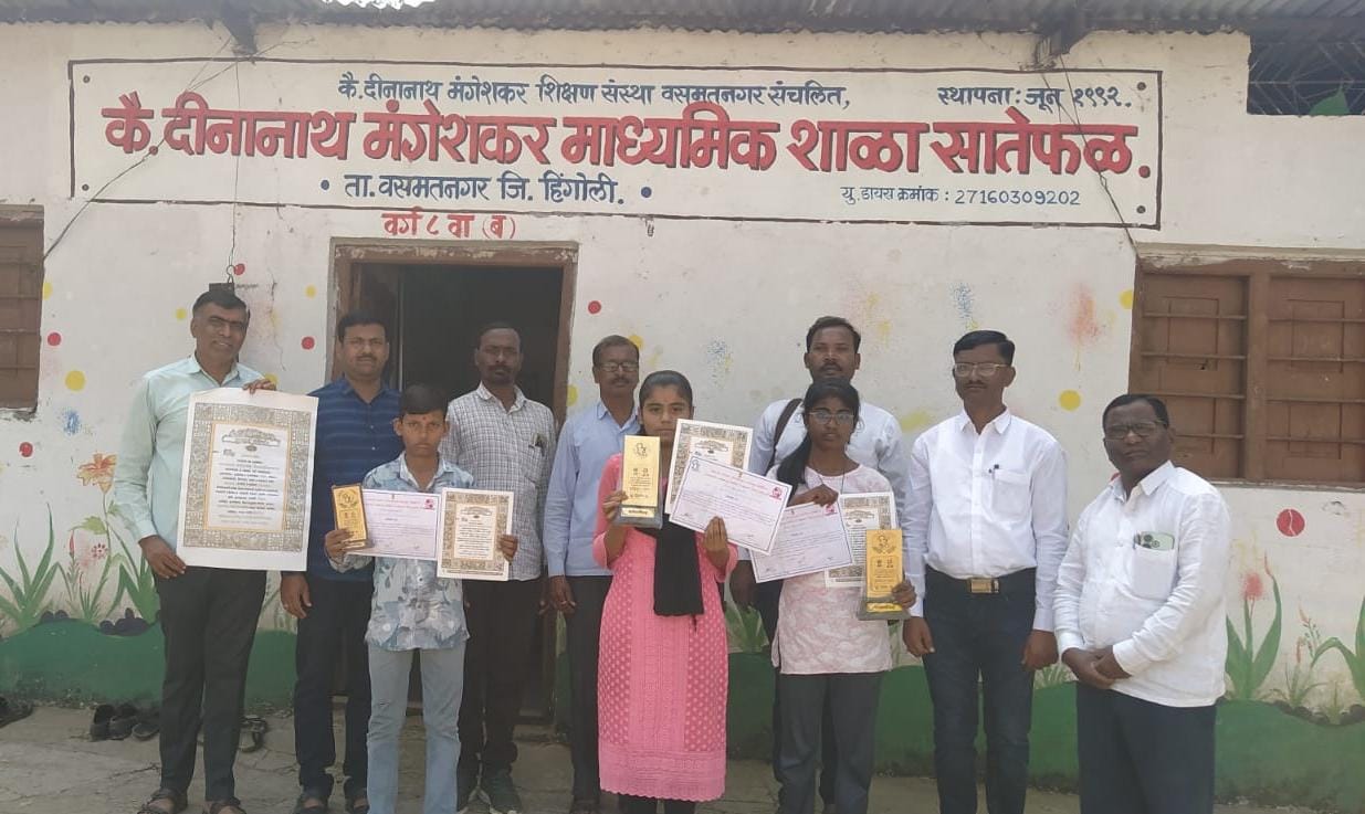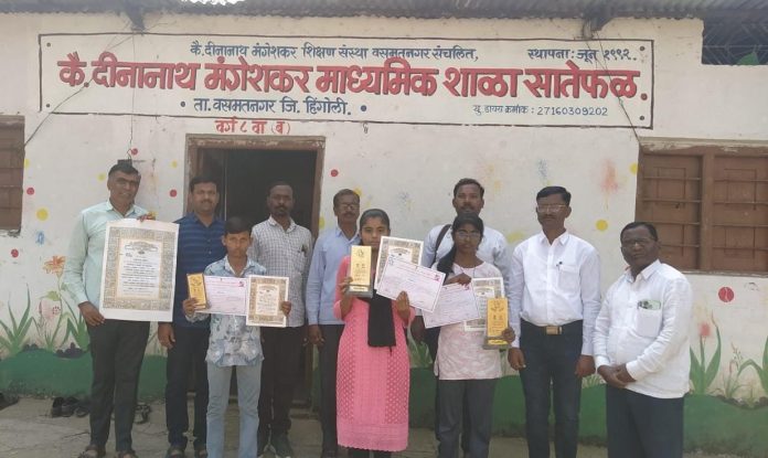 वसमत तालुक्यातील सातेफळ येथील महाराष्ट्र शासनाच्या सामाजिक न्याय व विशेष सहाय्य विभागाची स्वायत्त संस्था डॉ. बाबासाहेब आंबेडकर संशोधन व प्रशिक्षण संस्था बार्टी,पुणे. यांच्यामार्फत बार्टी महासंचालक सुनील वारे, निबंधक विशाल लोंढे, विभागीय व्यवस्थापक डॉ. जोगदंड व प्रकल्प व्यवस्थापक सुमेध थोरात सर हिंगोली जिल्हा प्रकल्प अधिकारी सिध्दार्थ गोंवदे यांच्या मार्गदर्शनाखाली वसमत तालुका समातादुत, मिलींद आळणे गुरुनाथ गाडेकर 26 नोव्हेंबर ते 26 जानेवारी संविधान अमृत महोत्सव या दिनानिमित्त सातेफळ येथील कै. दिनानाथ मंगेशकर माध्यमिक विद्यालय येथे निबंध स्पर्धेचे आयोजन केले होते. यामध्ये सर्वोत्कृष्ट आलेल्या विद्यार्थ्यांचे सन्मानपत्र व सन्मान चिन्ह देऊन त्यांचा सत्कार कार्यक्रम आज सातेफळ येथील दिनानाथ मंगेशकर माध्यमिक शाळा सातेफळ साजरा केला.यावेळेस महामानव डॉ. बाबासाहेब आंबेडकर यांच्या प्रतिमेला अभिवादन करून या कार्यक्रमाची सुरुवात करून गाडेकर गुरुनाथ यानी बार्टी मार्फत राबवित असलेल्या योजना बाबत मार्गदर्शन केले.याप्रसंगी या कार्यक्रमाचे अध्यक्ष विद्यालयाचे मुख्याध्यापक मा. एन. एन. रावले होते. तर सहशिक्षक एस. पि. बोराळकर, पी.जी. जाठोरे, वाय. एम. ढगे,एन. एन. राऊत, पी.डी. कोल्हे, आर. पी. सुम नरवाडे,भागवत भोसले आदी मान्यवर उपस्थित होते याप्रसंगी विद्यार्थी,विधार्थीनी मोठ्या संख्येने उपस्थित होते.