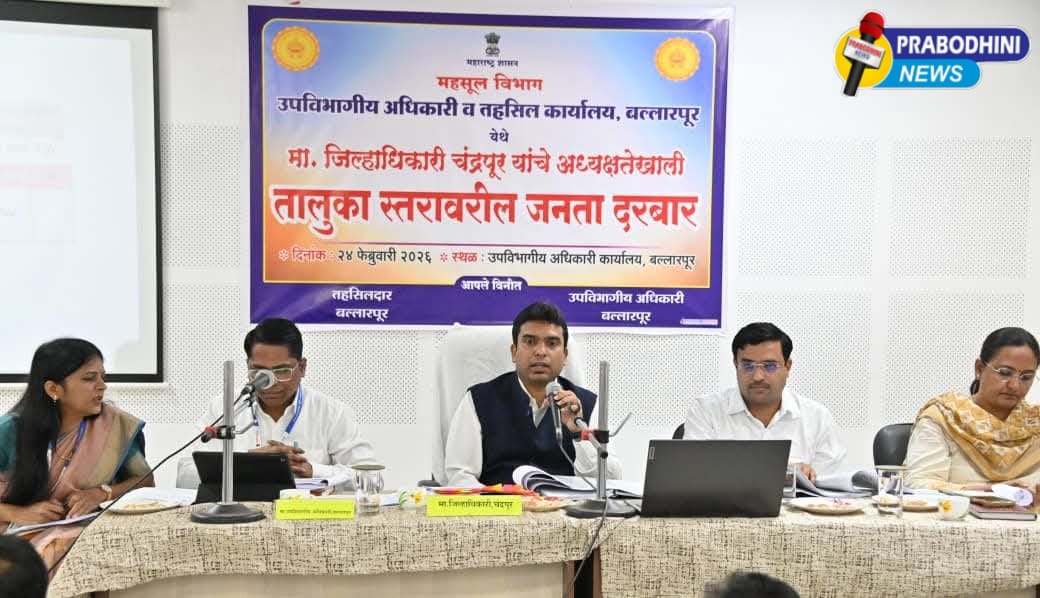 नम्रता सरदार मुख्य संपादिका प्रबोधिनी न्युज – चंद्रपूर दि. 24 : नागरिकांच्या तक्रारींचे स्थानिक स्तरावर निराकरण व्हावे, त्यांच्या समस्या यंत्रणेने जाणून घेऊन, त्या जागच्या जागी सोडविण्यासाठी कार्यवाही करावी, यासाठी जिल्हाधिकारी विनय गौडा जी. सी. यांच्या अध्यक्षतेखाली बल्लारपूर उपविभागीय अधिकारी कार्यालय येथे जनता दरबारचे आयोजन करण्यात आले होते. यावेळी जिल्हाधिकारी गौडा यांनी नागरिकांच्या तक्रारी ऐकून त्यावर त्वरीत कार्यवाही करण्याचे निर्देश संबंधित यंत्रणेला दिले.