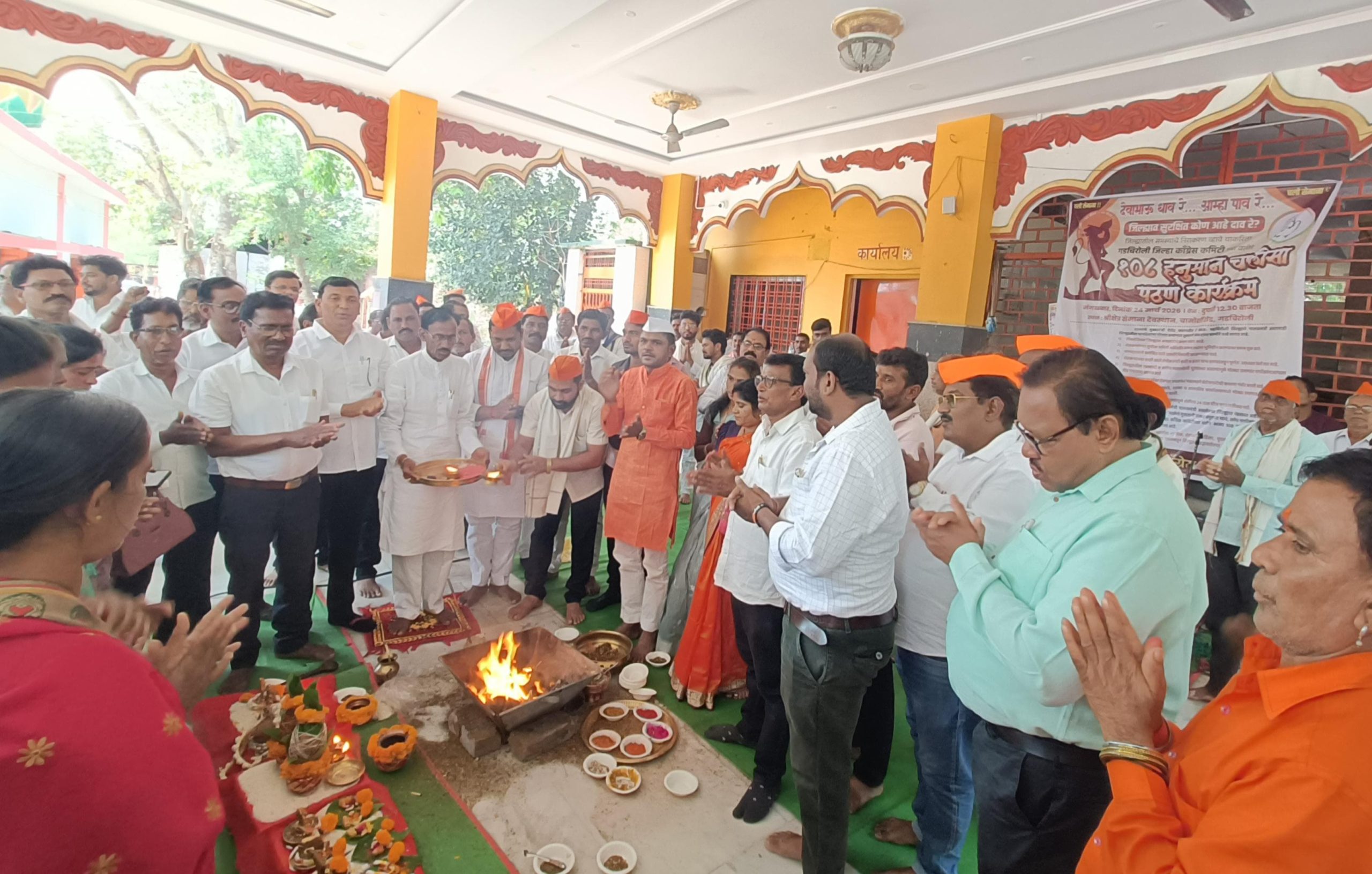 गडचिरोली प्रतिनिधी प्रबोधिनी न्युज नेटवर्क – राज्याचे मुख्यमंत्री देवेंद्र फडणवीस हे गडचिरोली जिल्ह्याचे स्वतः पालकमंत्री असून सध्या जिल्ह्यातील जनतेला मोठ्या संख्येने हालअपेष्टा सहन कराव्या लागत आहेत. जिल्ह्यातील रस्त्यांच्या दुरावस्थेमुळे व जड वाहतुकीमुळे दिवसागणिक अपघातांचे प्रमाण वाढत आहे. जिल्ह्यातील सुपीक जमिनी अधिग्रहित करून शेतकऱ्यांना भूमिहीन केले जात आहे. जिल्ह्यात अशा अनेक समस्या असून जिल्ह्याच्या पालकमंत्र्यांनी जिल्ह्यातील जनतेला पोरके केले असून त्यांच्या रक्षणाकरिता देवाभाऊंनी लक्ष घालावे, याकरिता गडचिरोली जिल्हा काँग्रेस कमिटीच्या वतीने जिल्हाध्यक्ष महेंद्र ब्राह्मणवाडे यांच्या मार्गदर्शनात सेमाना मंदिर देवस्थान येथे भव्य हनुमान चालीसा पठण करण्यात आले.