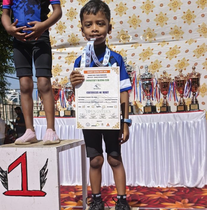 अंडर- 6 वर्षे इनलाईन गटात सहभागी झालेल्या अधीरने सुरुवातीपासूनच आत्मविश्वासपूर्ण खेळ करत प्रतिस्पर्ध्यांना कडवी टक्कर दिली. त्याच्या संतुलन, वेग आणि तंत्रातील अचूकतेमुळे त्याने सर्वांचे लक्ष वेधून घेतले आणि अखेर तृतीय क्रमांक पटकावण्यात यश मिळवले.