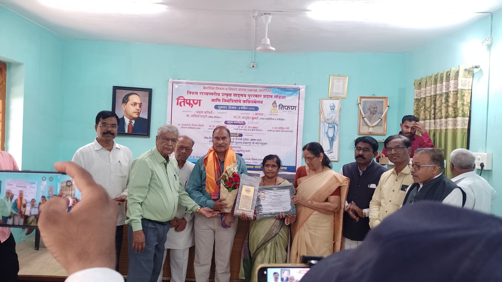 संभाजीनगर येथील महात्मा गांधी स्मारक निधी भवनात झालेल्या तिफण पुरस्कार वितरण सोहळ्यात कार्यक्रमाचे अध्यक्ष डॉ. वासुदेव मुलाटे, (ज्येष्ठ साहित्यिक व समीक्षक ), डॉ. ललिता गादगे (ज्येष्ठ लेखिका) यांचे हस्ते प्राचार्य डॉ. विजय भोसले(शिवाजी महाविद्यालय कन्नड), डॉ. सर्जेराव जिगे (मराठी अभ्यास मंडळ, औरंगाबाद), प्रा. डॉ. रमेश जाधव (मराठी विभाग प्रमुख , डॉ बाबासाहेब आंबेडकर मराठवाडा विद्यापीठ औरंगाबाद), डॉ. मच्छिंद्र गोर्डे (कार्याध्यक्ष, महात्मा गांधी स्मारक निधी भवन), प्रा. डॉ. शिवाजी हुसे (संपादक तिफण), प्रा. डॉ. दिलीप बिरुटे (अध्यक्ष, तिफण वाचक चळवळ), प्रा. डॉ. रामचंद्र झाडे, डॉ. नवनाथ गोरे (सदस्य, संपादक मंडळ) इ. मान्यवरांच्या उपस्थितीत हा पुरस्कार प्रदान करण्यात आला.