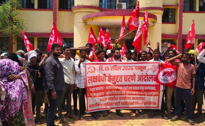 एटापल्ली प्रतिनिधी : भामरागड तालुक्यातील भटपार परिसरातील रस्त्यांची अत्यंत दयनीय अवस्था, तसेच मूलभूत सुविधांच्या अभावाविरोधात भारतीय कम्युनिस्ट पक्ष (भाकप) गडचिरोली जिल्हा यांच्या वतीने दिनांक १५ एप्रिल २०२६ पासून बेमुद्दत लक्षवेधी आंदोलन सुरू करण्यात आले आहे.